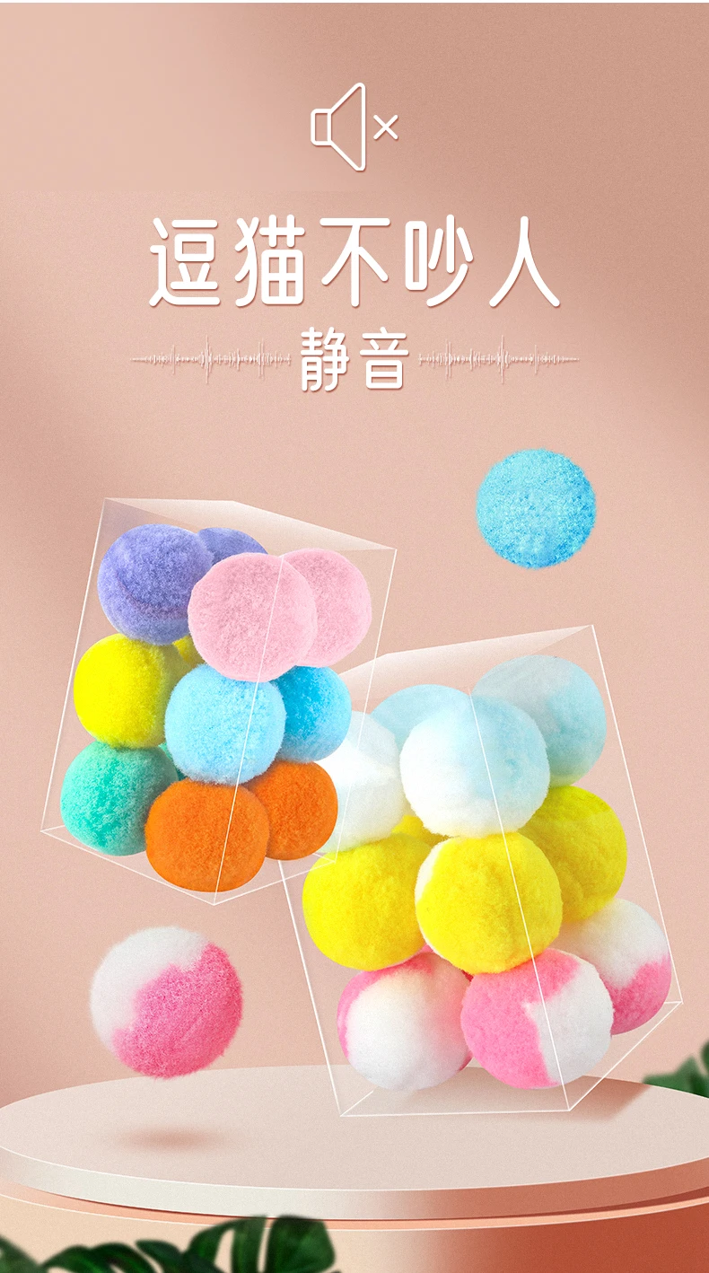 Bola de felpa elástica silenciosa para gato, juguete interactivo para mascotas, caja suave, accesorios de fotografía, regalo de cumpleaños, 12 piezas