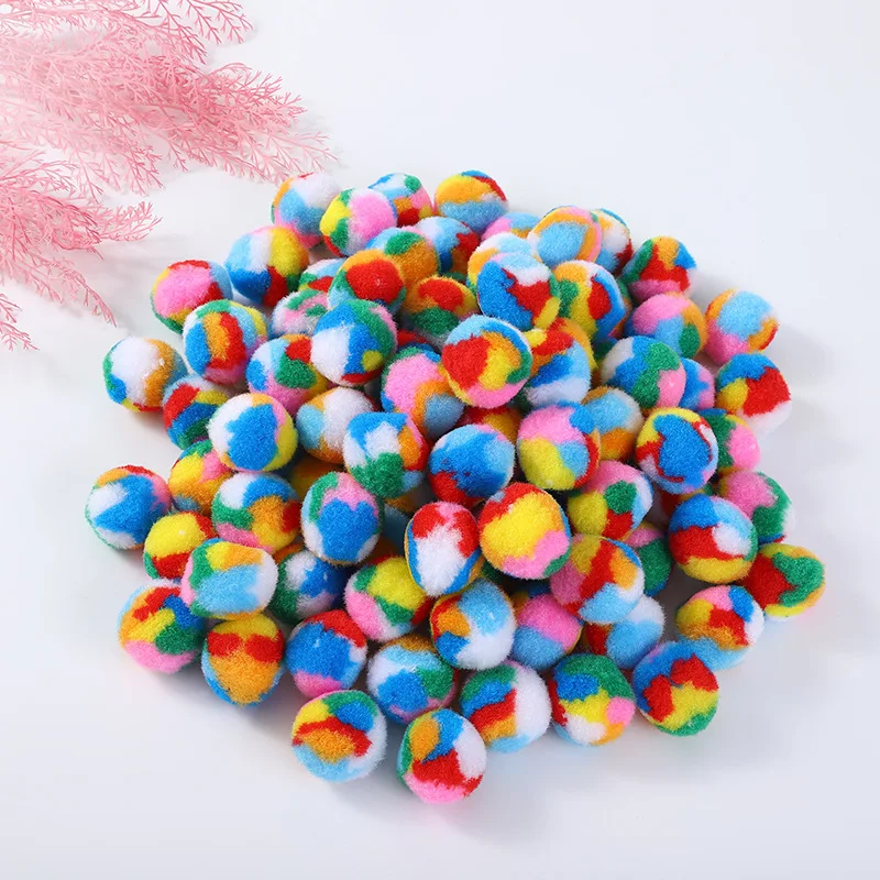 Bola de felpa de poliéster suave y duradera para gato, juguete ligero de 3,5 cm de diámetro, resistente y resistente a morder, 10 piezas