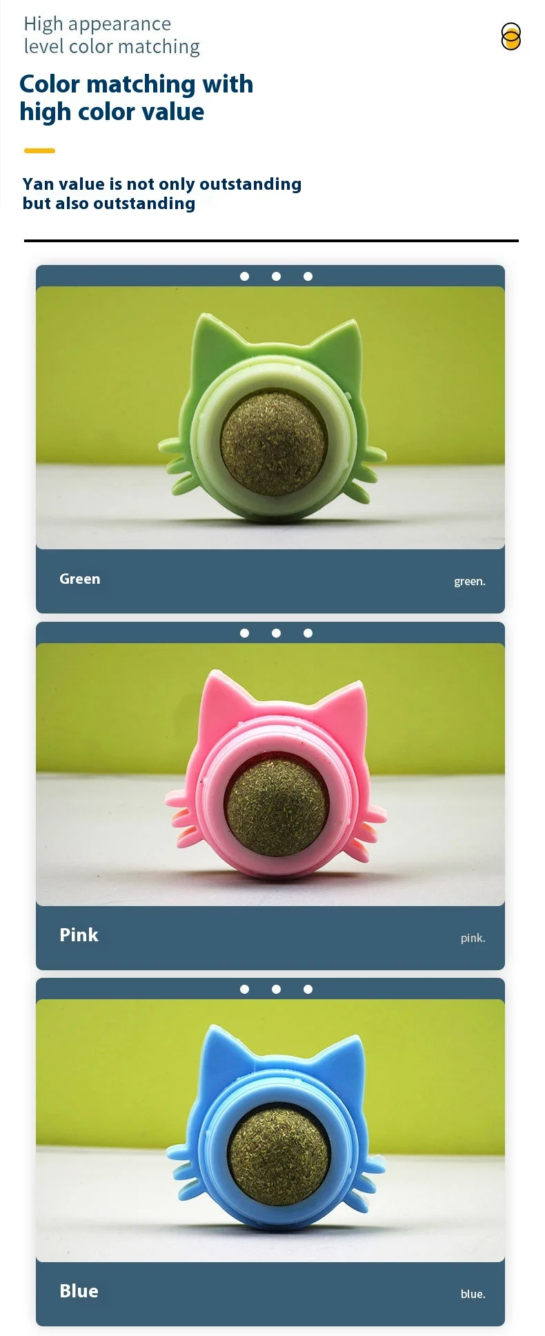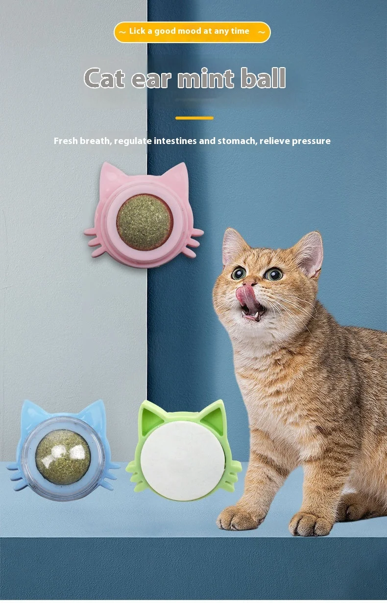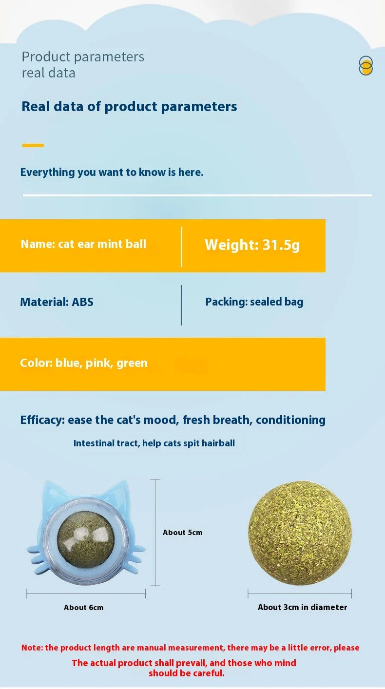 Bola giratoria de menta con orejas de gato, juguete interactivo feliz para gatos, gusanos, fruta, madera, Polygonum
