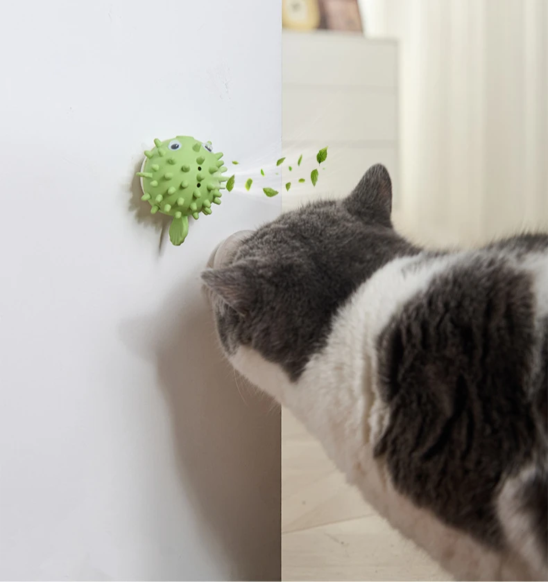 Bola de hierba gatera para moler dientes de mascotas, juguetes para gatos, suministros de juego interactivos duraderos para interiores, productos para masticar de plástico montados en la pared