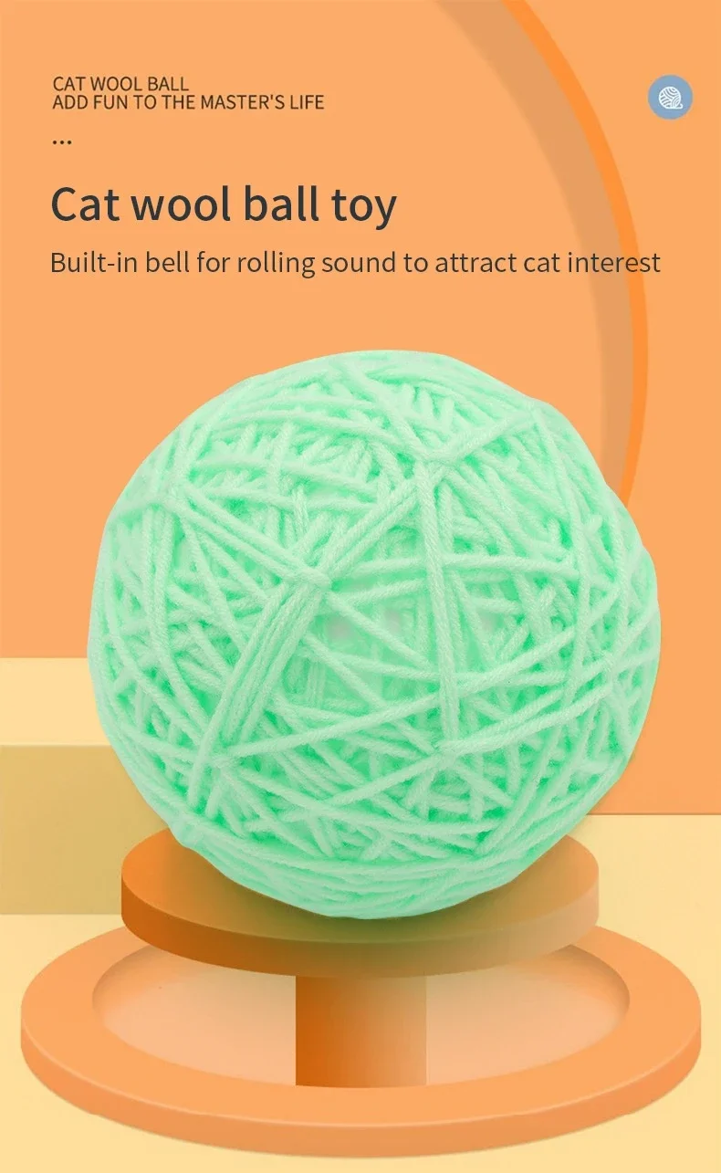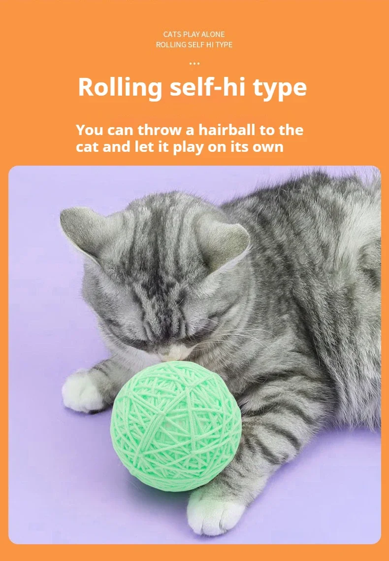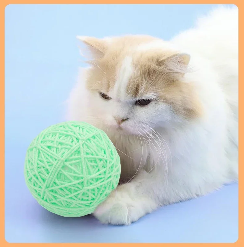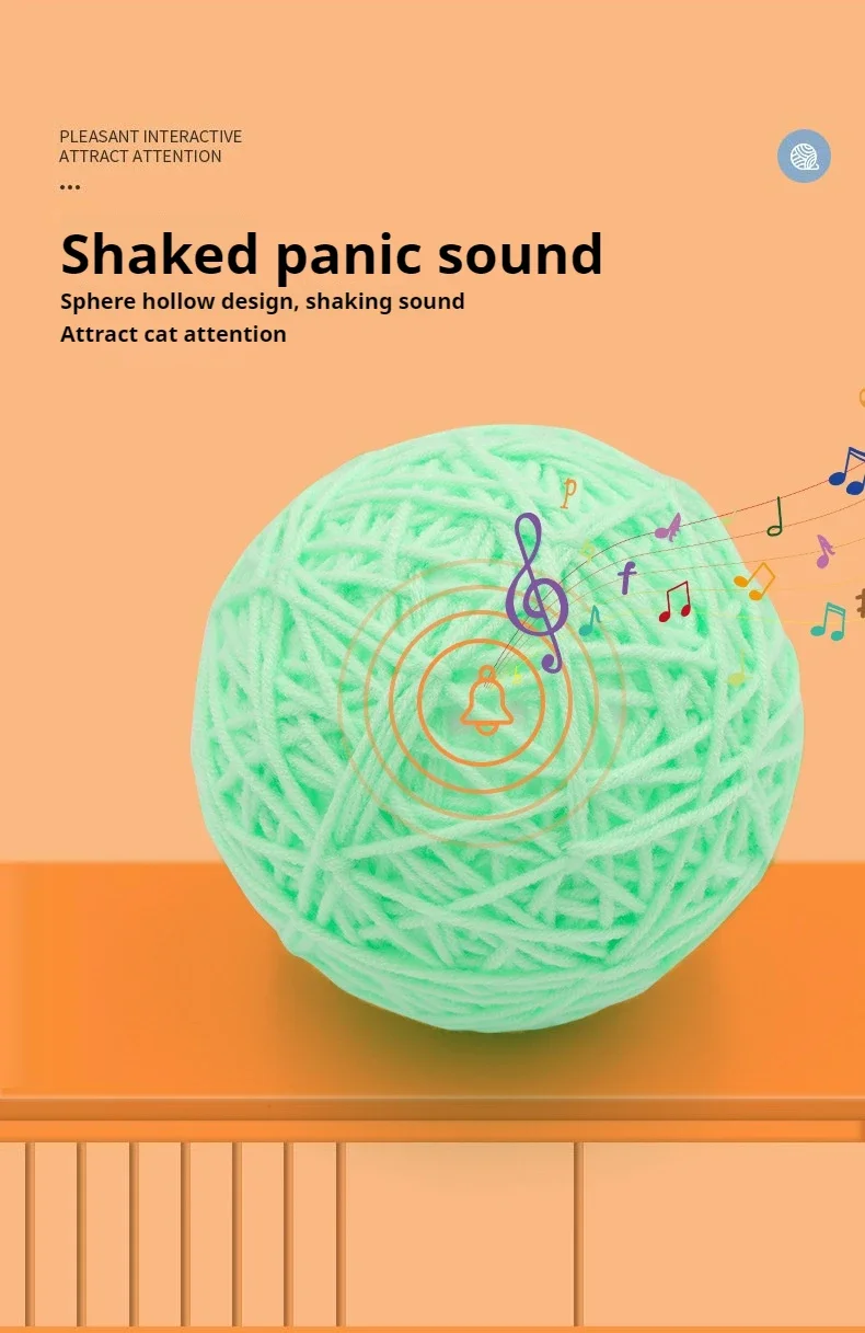 Bola de hilo grande verde que hace ruido de diversión, interactivo, morder, jugar, juguete para gatos
