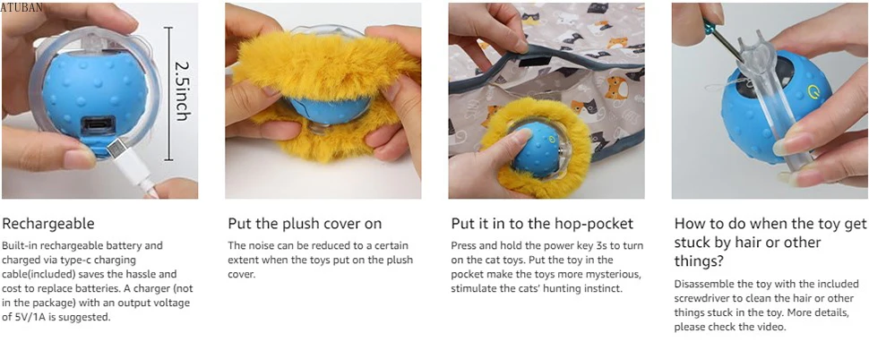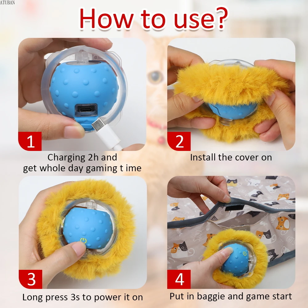 Trabajar en el bolsillo: poner la pelota eléctrica rodante para gatos en la bolsa hace que el juguete sea más misterioso, estimula a los gatos/gatitos a abalanzarse, patear y rascar los juguetes de la bolsa, no se preocupe por encontrar juguetes. Este juguete motorizado para gatos también ayudará a evitar que su gato arañe y raye sus muebles.