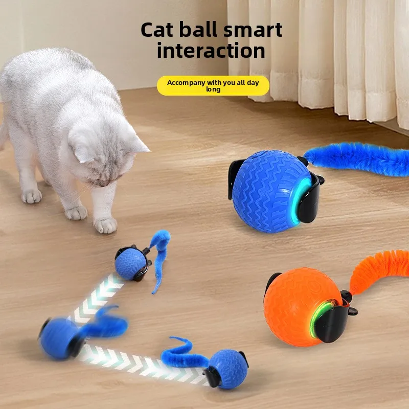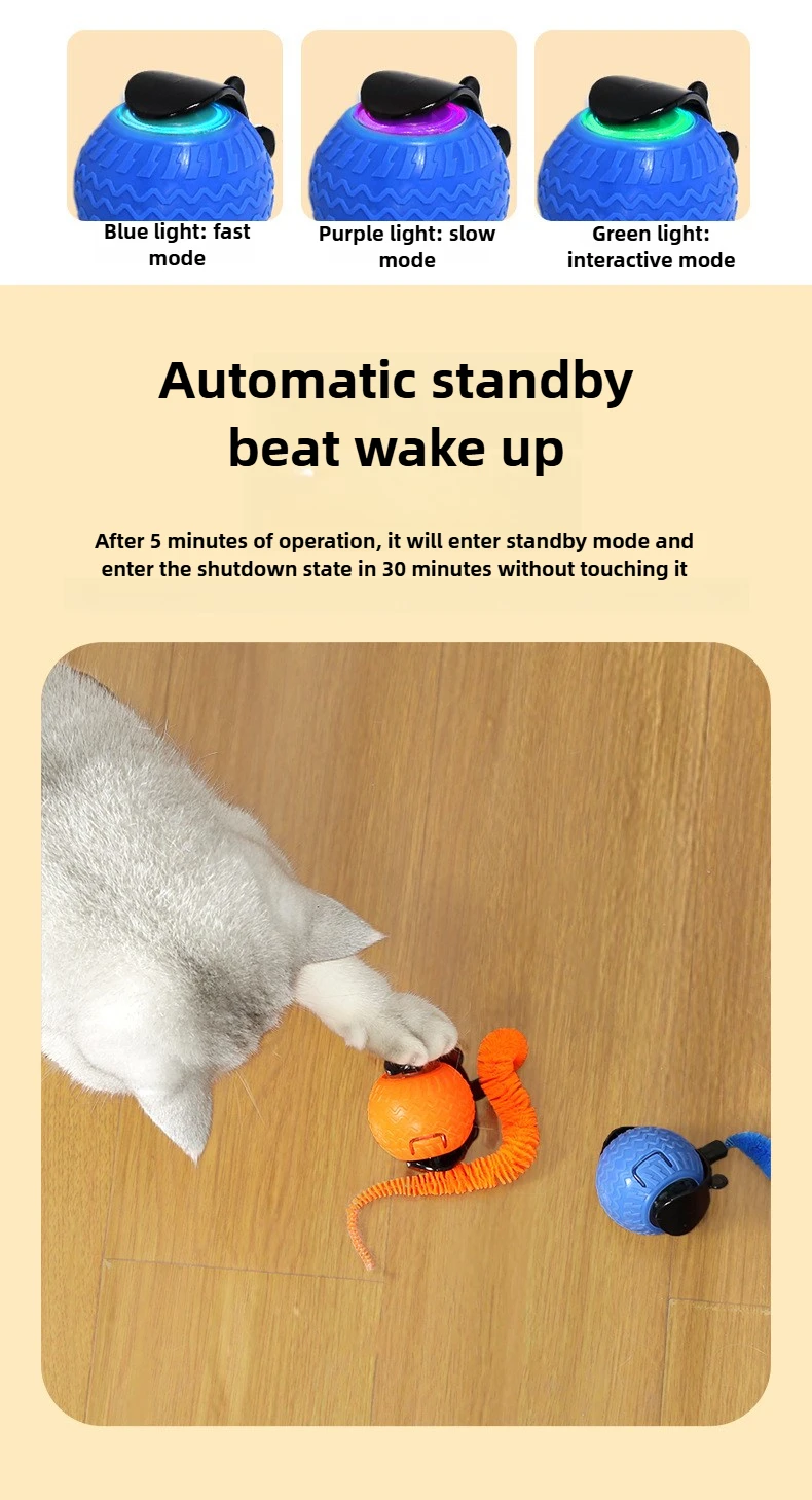 Bola de juguete para gatos automática resistente a mordeduras, artefacto para aliviar el aburrimiento con cuerda, suministros para mascotas, bolas rodantes