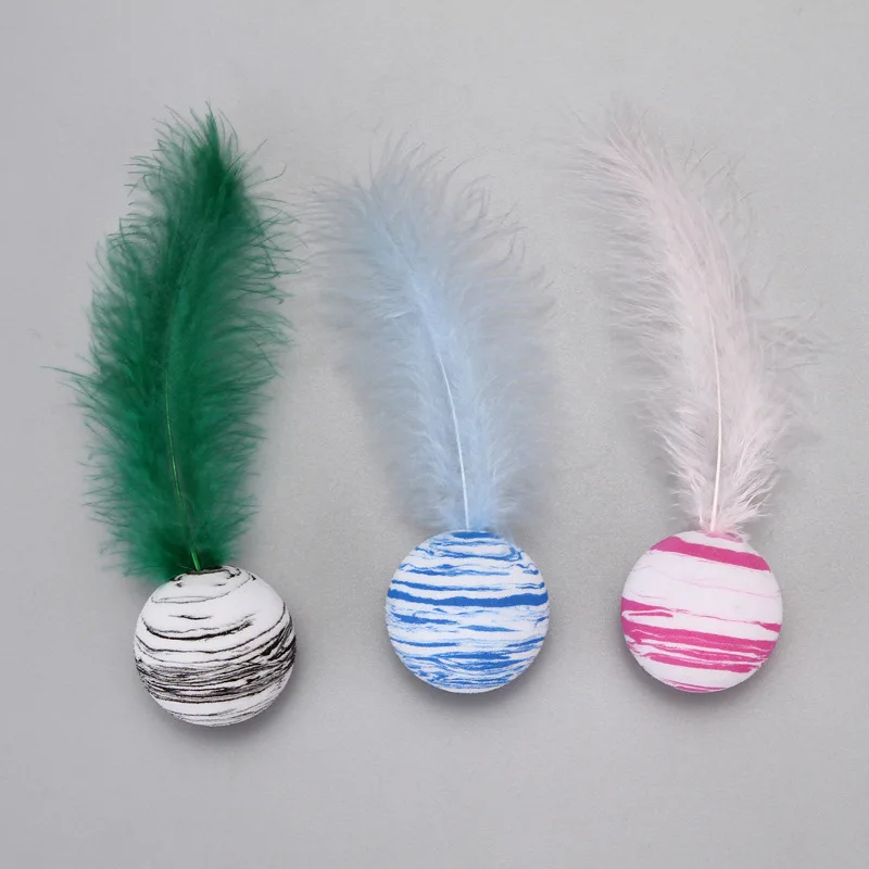 Bola de juguete para gatos, divertido juguete para gatos con plumas, bola de estrella más pelota de espuma de plumas, juguetes interactivos de peluche, suministros para mascotas, juguete Katten