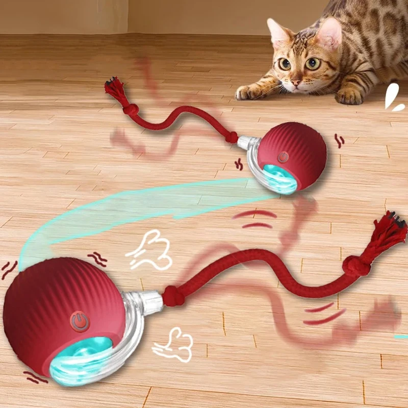 Juguetes interactivos para gatos, pelota de juguete para gatos con ruedas automáticas, pelota de juguete eléctrica inteligente recargable por USB para gatos, juguetes para mascotas para aliviar el estrés