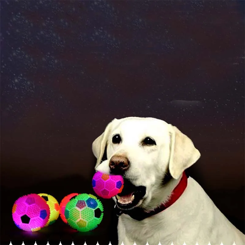 Bola para masticar para mascotas, bola Led brillante con botón incorporado, batería para juguetes para perros y gatos, suministros interactivos para mascotas al aire libre