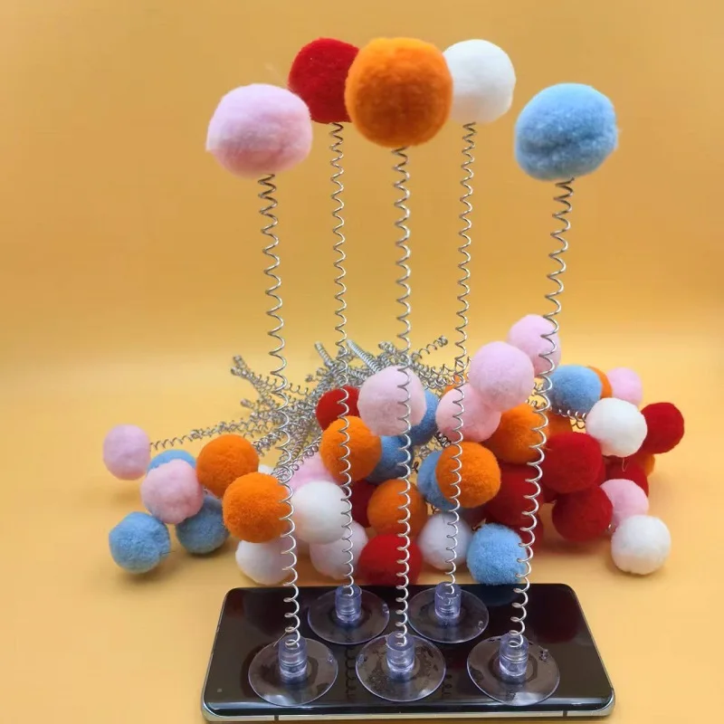 Bola de pelo de 5 piezas, juguete para gatos de primavera, ventosa, varita de rompecabezas multicolor, juguetes interactivos para mascotas, rascador para gatos, suministros de juguetes de Color aleatorio