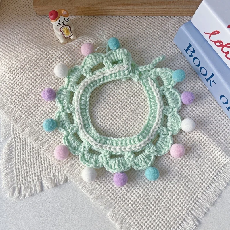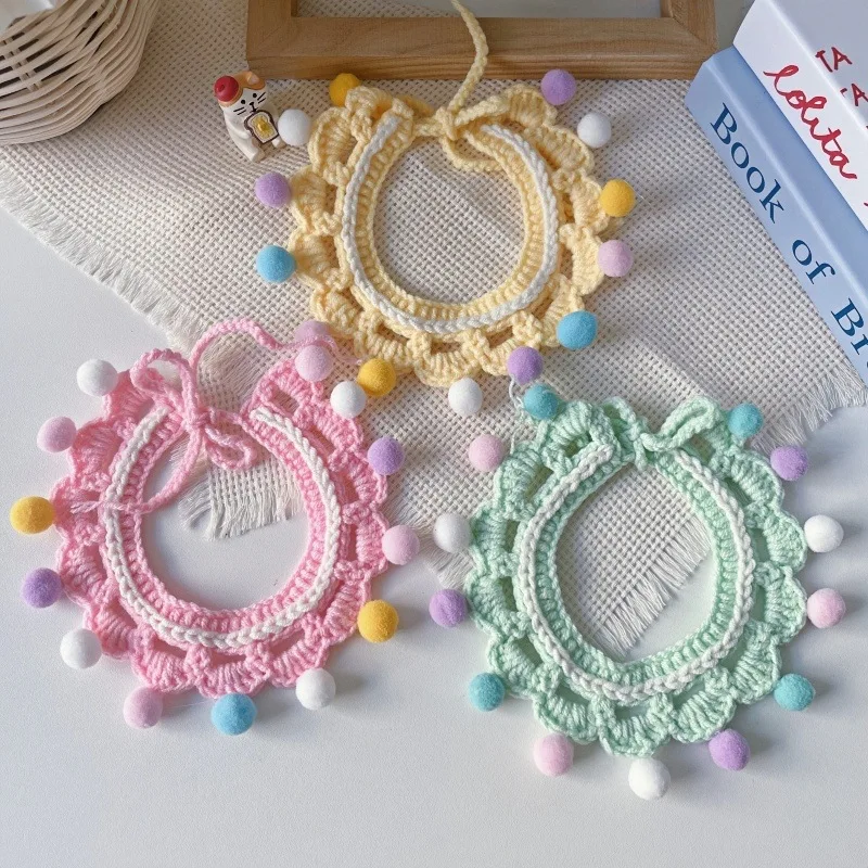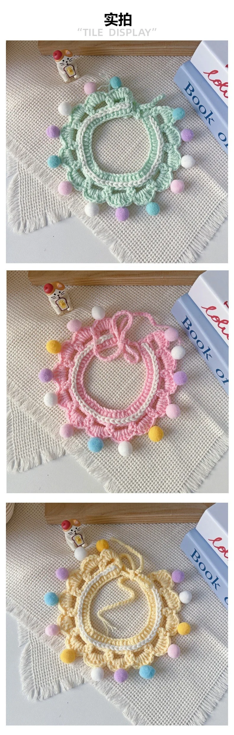 Bola de pelo para perros y gatos, Collar de color helado, Collar para el cuello para mascotas, Collar tejido a mano, babero tejido de hilo, accesorios para cachorros pequeños