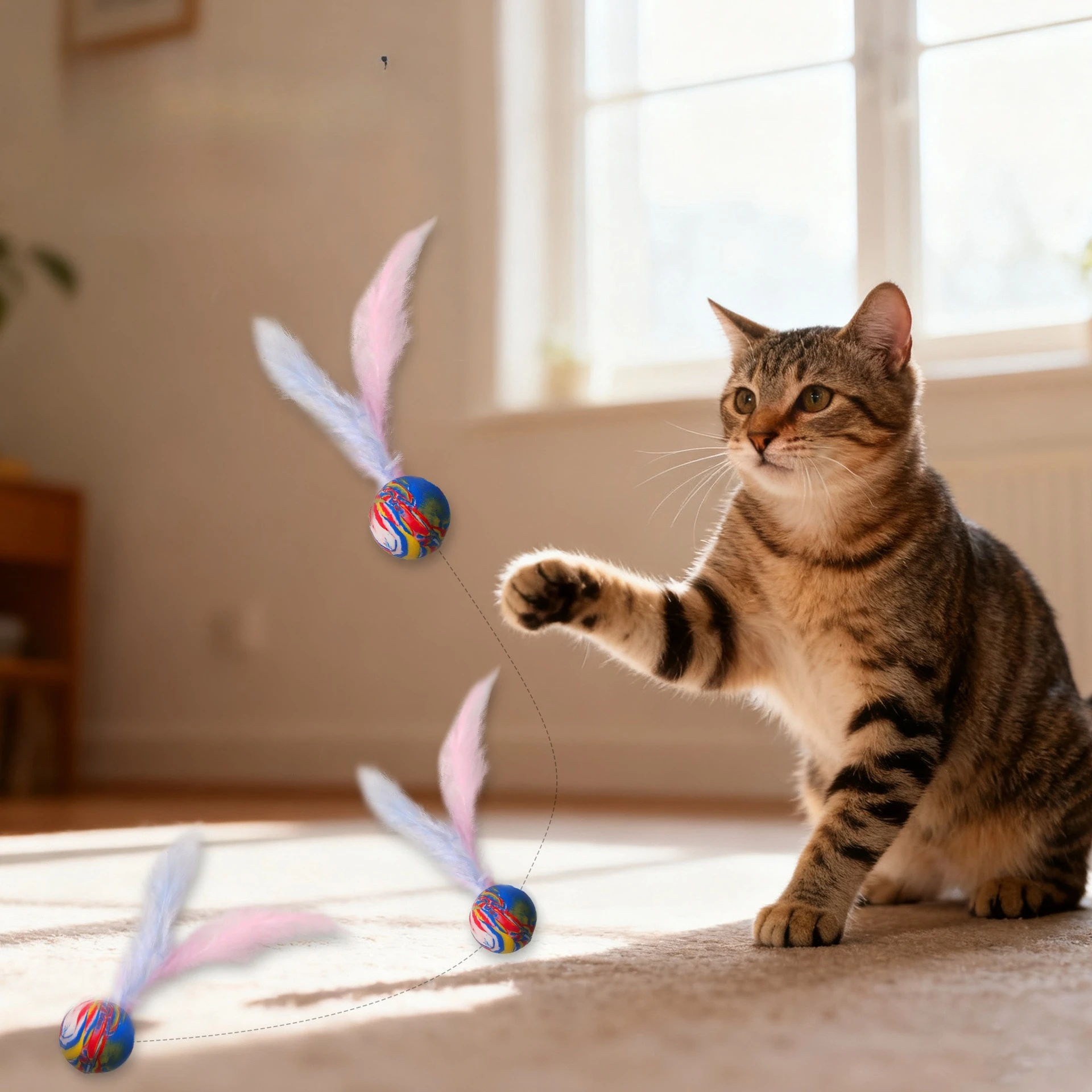 Bola de plumas divertidas para gatos, pelota interactiva más pelota de espuma de plumas, juguetes para lanzar, suministros para mascotas, juguete Katten