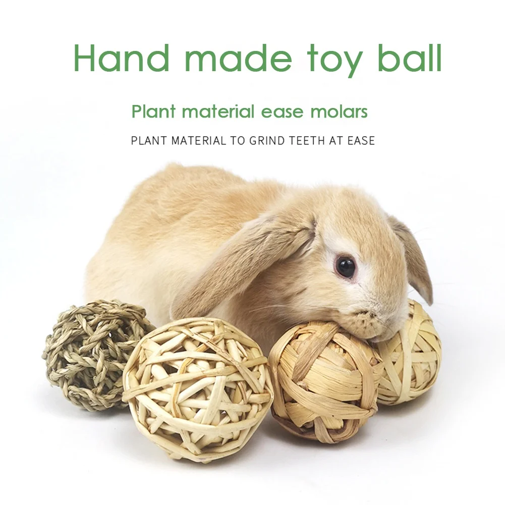 Conejo Bola Juguetes Conejito Golosinas Juguetes para la dentición Animales pequeños Masticar Juguetes Bola de hierba para hámster enano Conejos Conejillos DE INDIAS Jerbos, 5 piezas