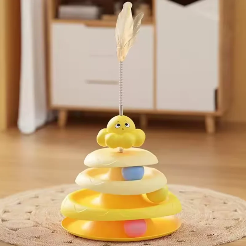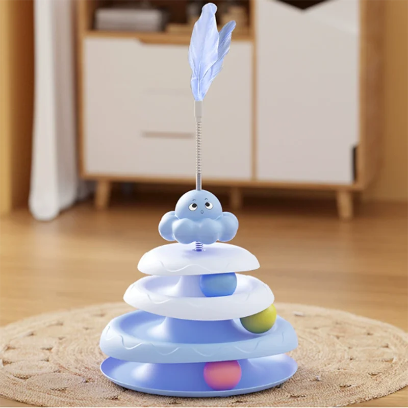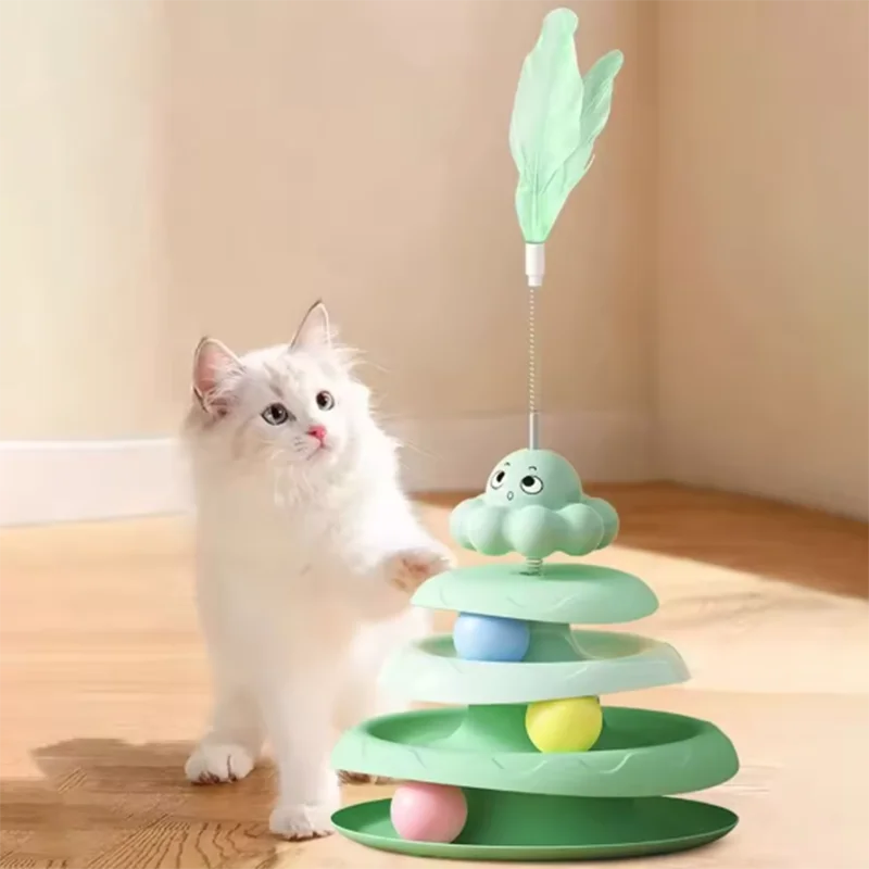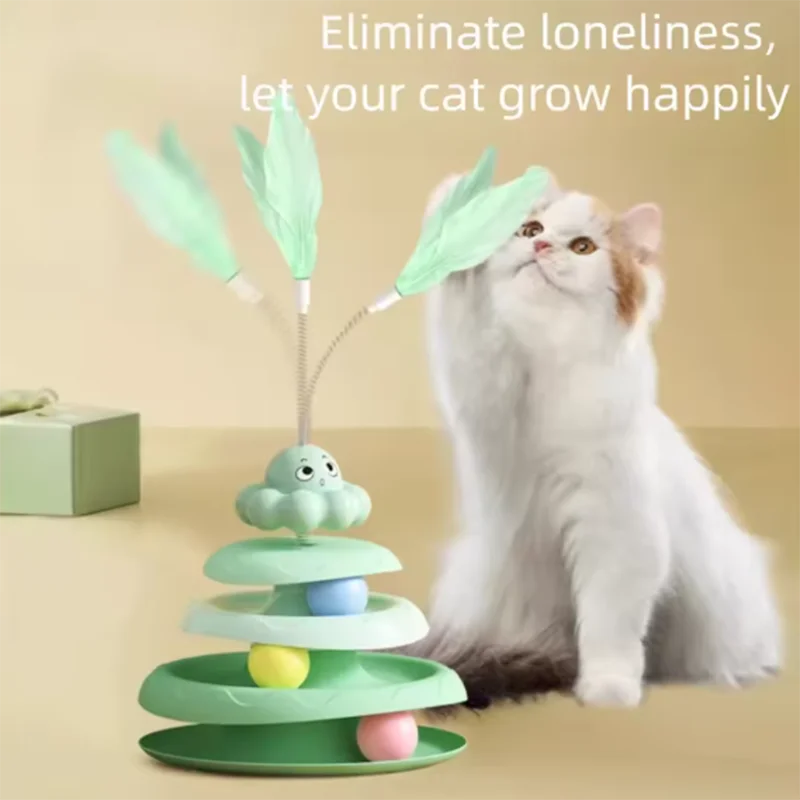 Bolas coloridas de juguete para gatos, pistas huecas, parque infantil portátil desmontable para gatos, palo giratorio interactivo para aliviar el aburrimiento
