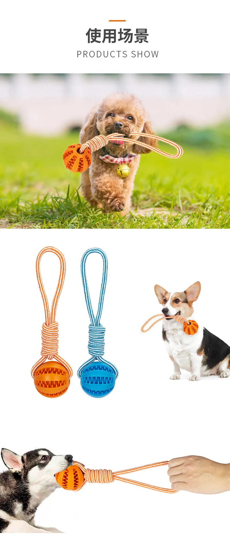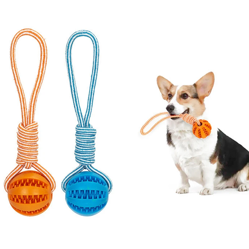 Bolas de golosinas para mascotas con cuerda, bolas interactivas de goma para perros que fuga, juguete para perros pequeños y grandes, juguetes resistentes a las mordeduras, suministros para mascotas