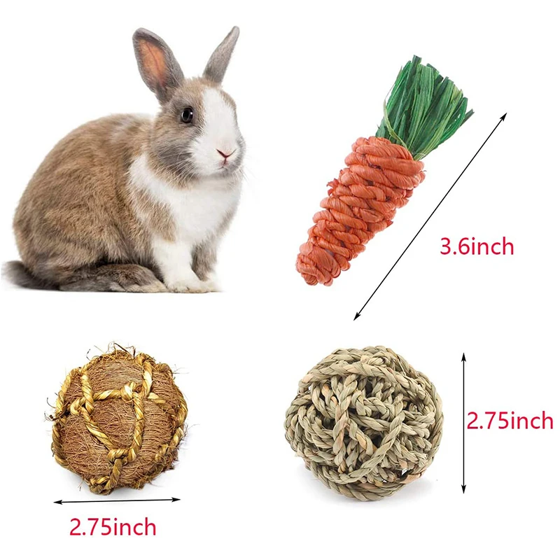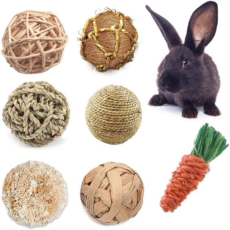 Pelotas de animales pequeños para jugar, juguetes para masticar rodantes y golosinas para roer para conejos, cobayas, Chinchilla, conejito, accesorios de entretenimiento