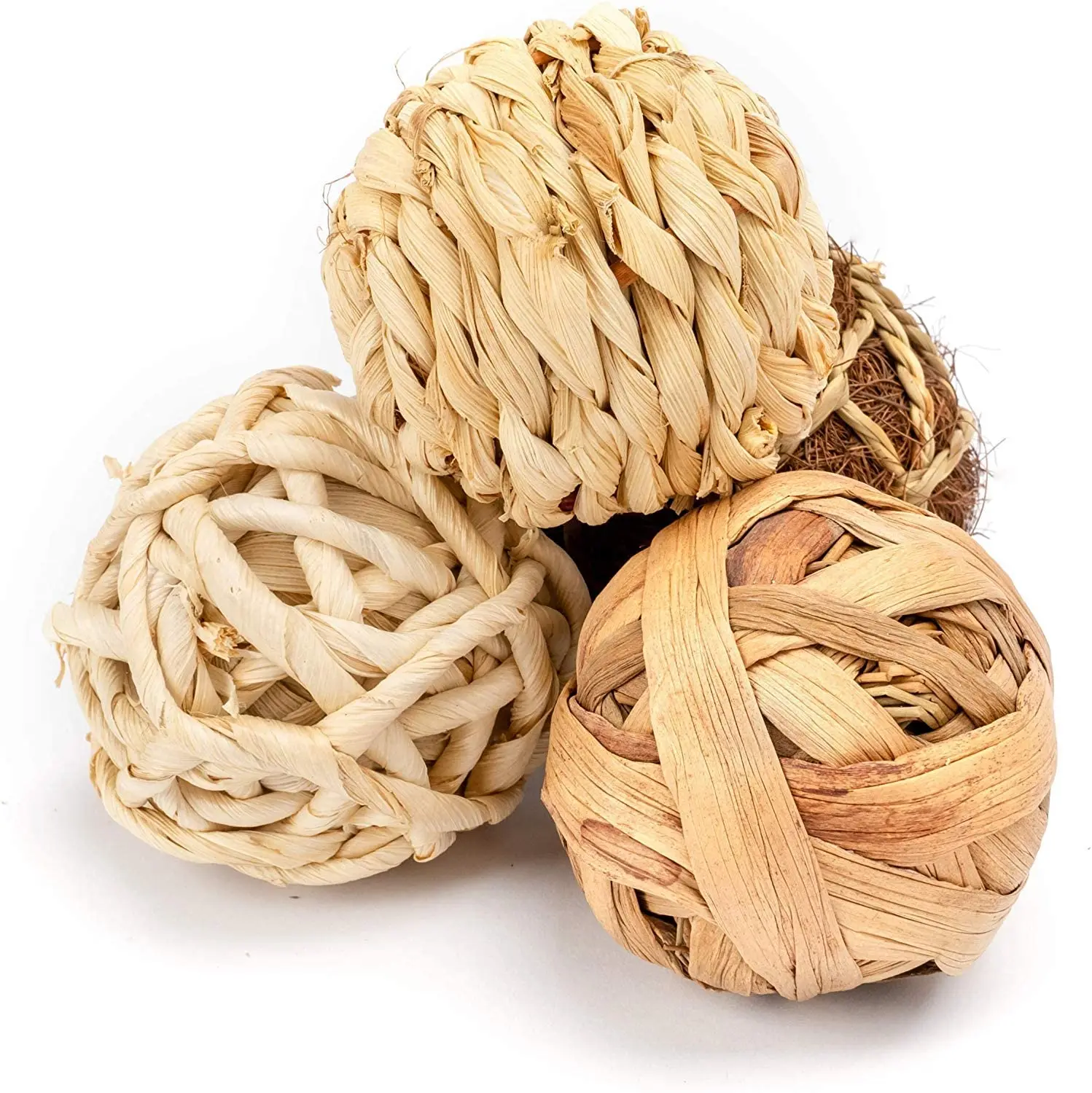 Juguetes masticables: las bolas están hechas de materiales naturales como algas marinas, jacinto de agua, ratán, ramitas de sauce, cáscara de maíz o fibra de coco. Son ricos en fibra y beneficiosos para mantener los dientes de sus mascotas recortados. También es una alternativa perfecta a los juguetes de plástico.