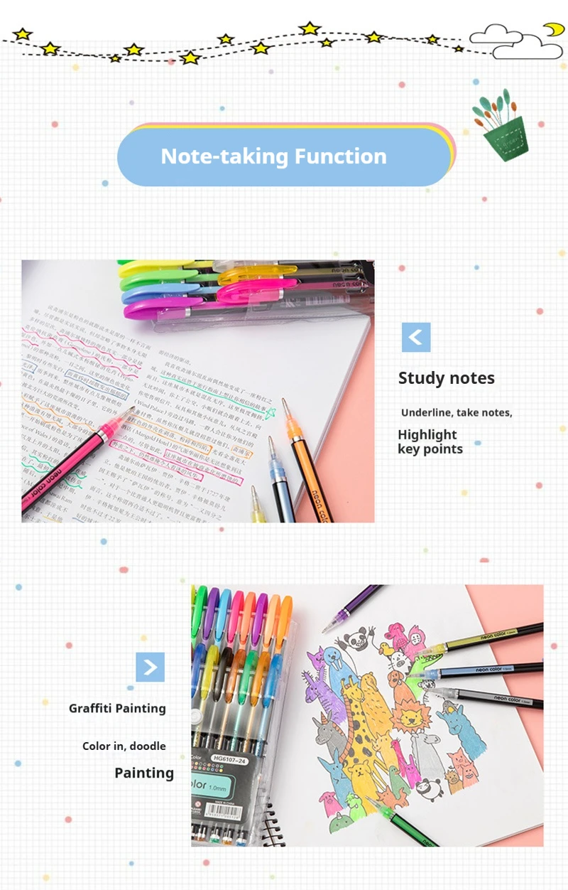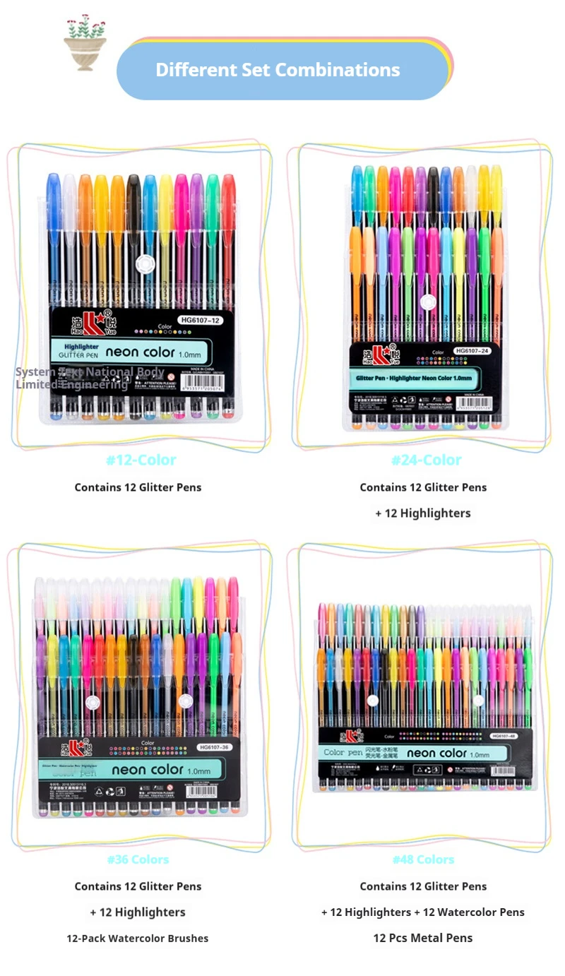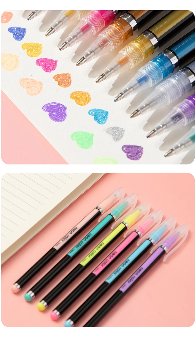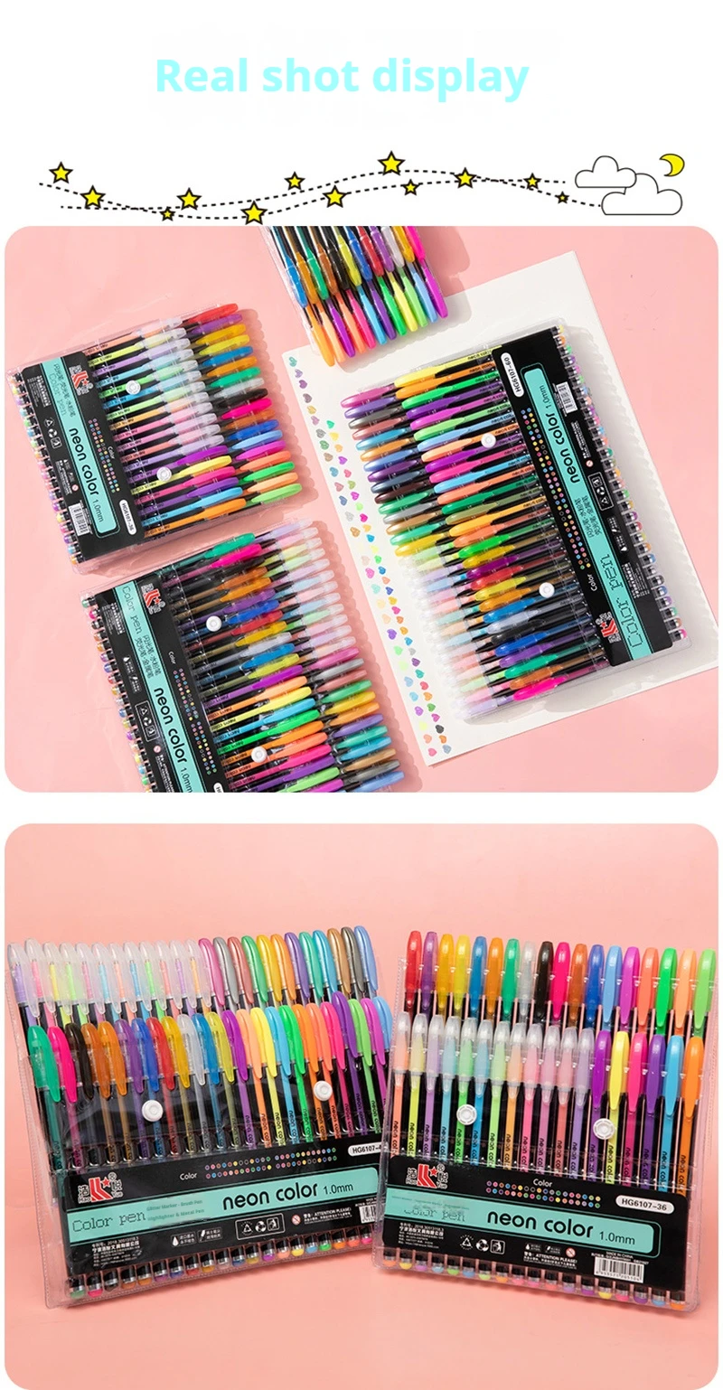 Bolígrafos de Gel con purpurina metálica, papelería colorida para escuela, oficina, dibujo, marcadores artísticos, resaltadores, 12-60 Uds.