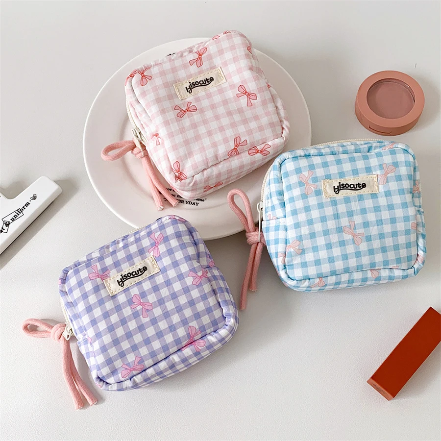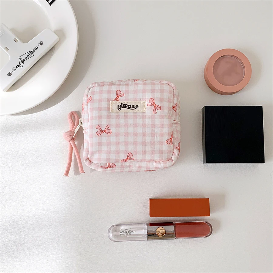 Bolsa de almacenamiento de cambio de cosméticos portátil, sobre rojo con boca a cuadros, lazo cuadrado Simple, versión coreana