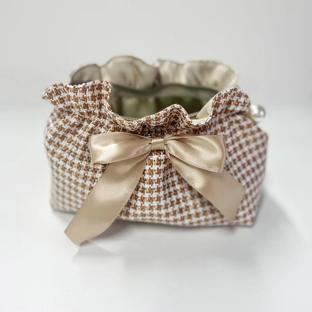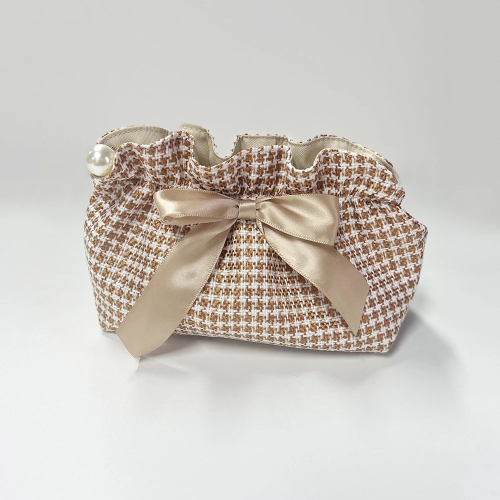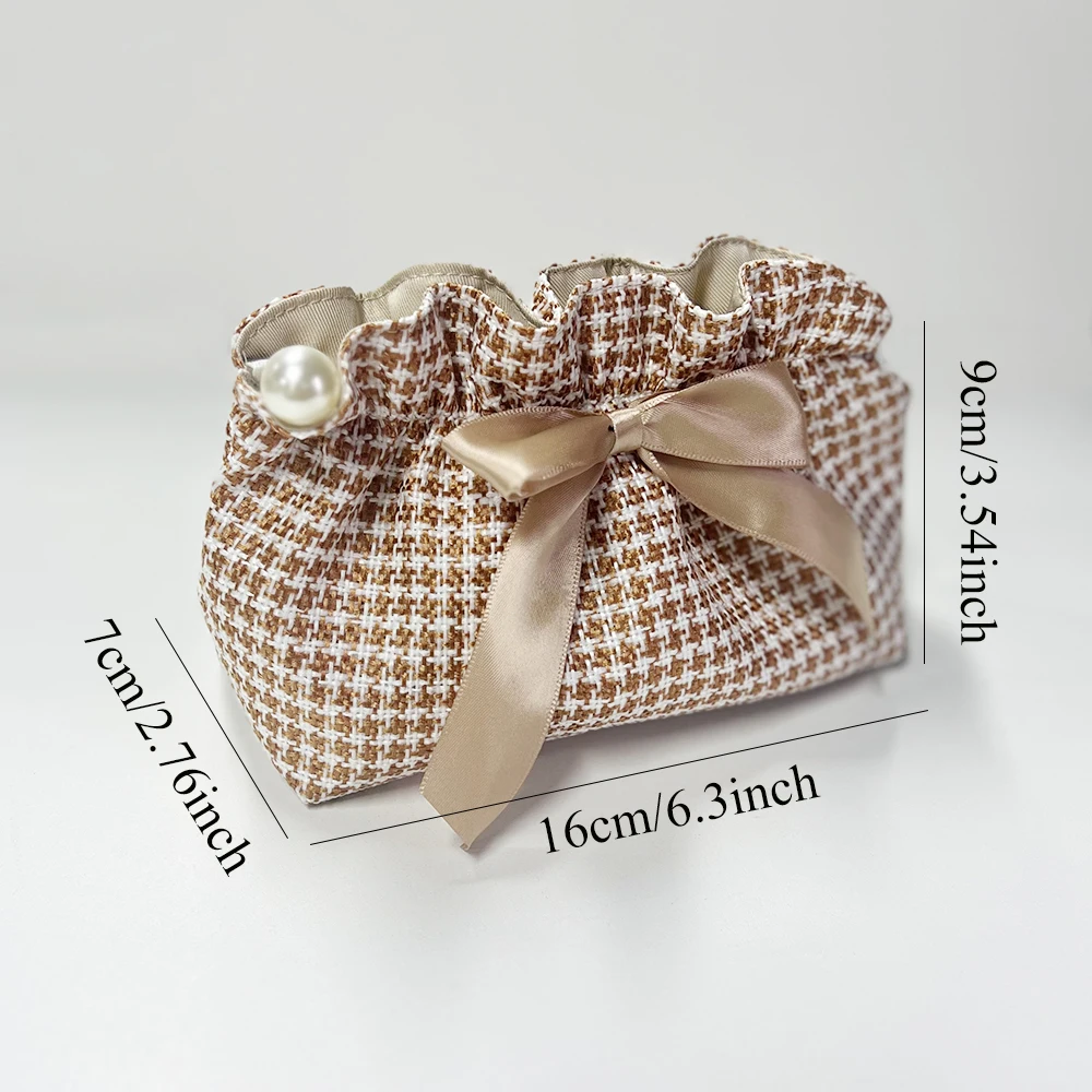 Bolsa de almacenamiento para niñas con lazo lindo • Monedero suave de color sólido • Bolso de mano para auriculares con lápiz labial de gran capacidad