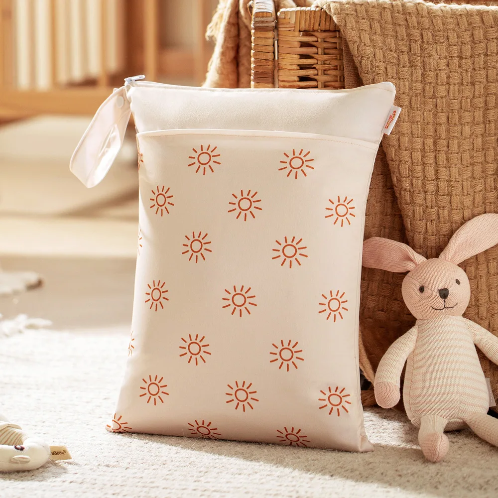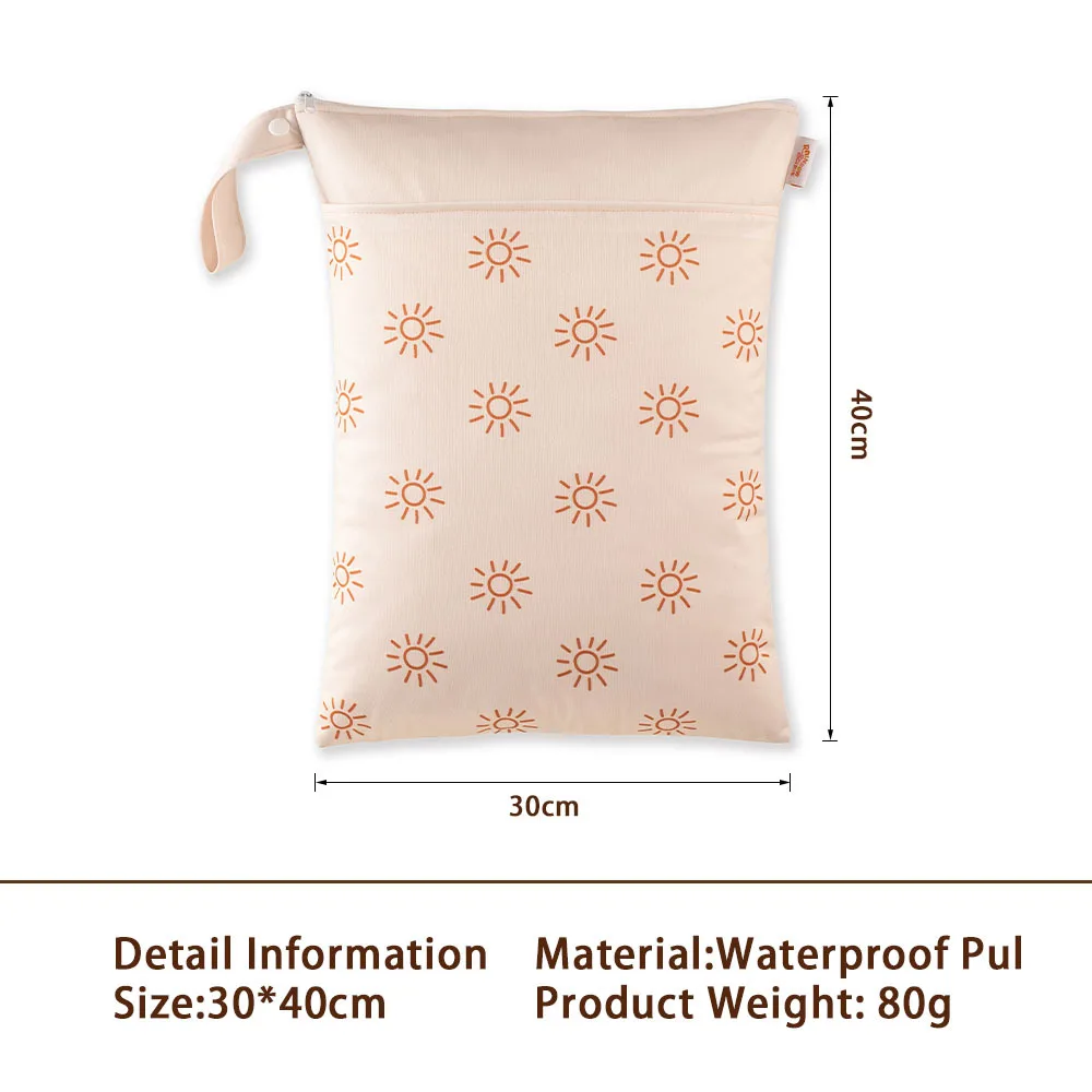 Bolsa de almacenamiento portátil con cremallera estilo nórdico 30*40cm Pul impermeable bolsa seca húmeda bolsas de viaje de pañales de tela lavables dos bolsillos