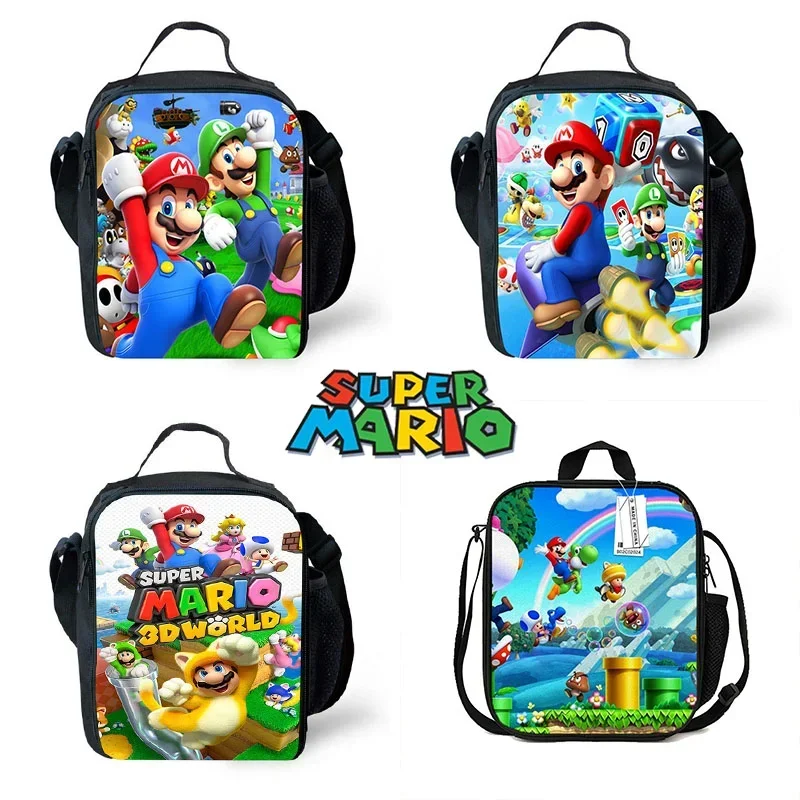 Bolsa de almuerzo escolar de dibujos animados de Super Marios Bros, refrigerador de Anime, fiambrera con aislamiento cálido para oficina de adultos, almacenamiento de papel de aluminio Hickened