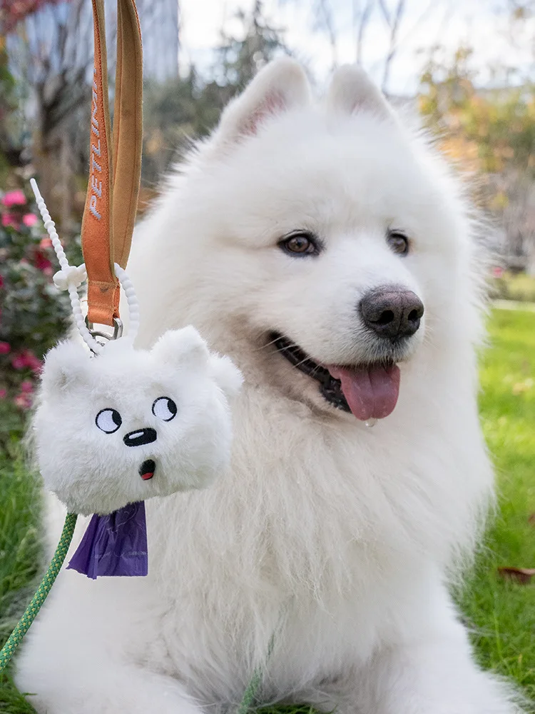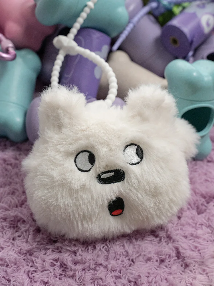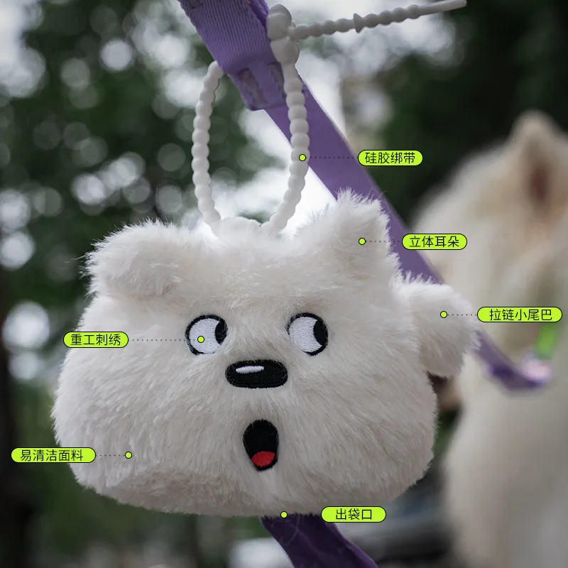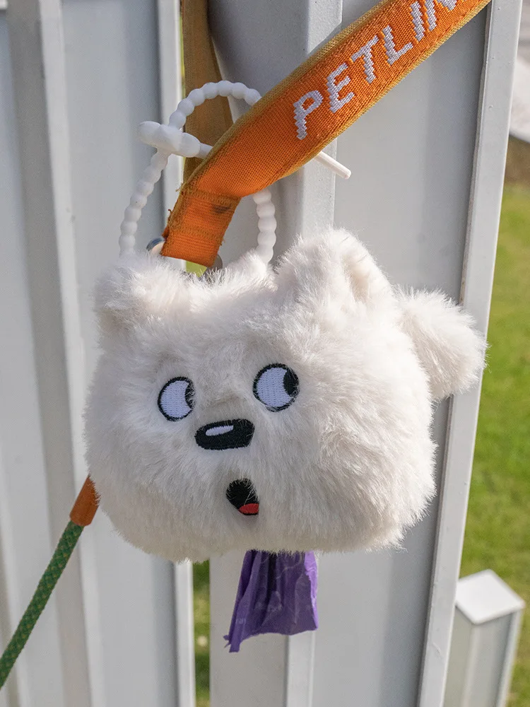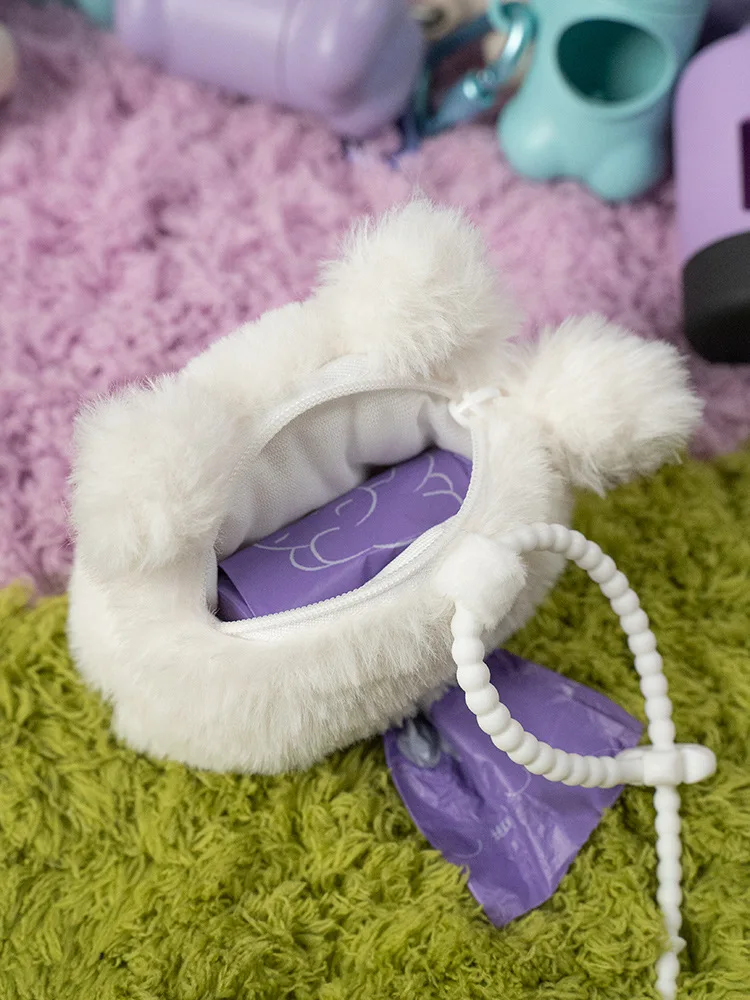 Bolsa de aseo de felpa para mascotas, bolsas de caca de perro de peluche bonitas, almacenamiento de suministros para mascotas, suministros para caminar, bolsa portátil bonita, accesorios para perros