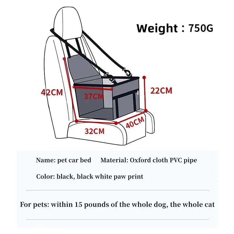 PARA ASIENTO PARA COCHE PEQUEÑO: 40 X 32 X 24 cm, Adecuado para perros, gatos y otras mascotas de menos de 10 kg. El asiento para automóvil para perros es ideal para llevar a su amigo peludo con usted en la carretera, mantiene a su mascota segura mientras conduce