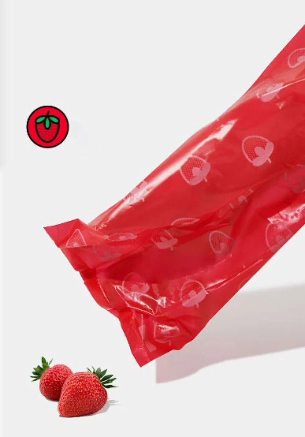 Se siente un poco grande y hay 7 bolsas. No tiene un fuerte aroma de fresa, pero es bonito.