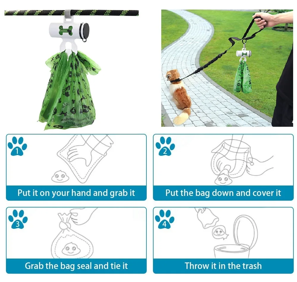 Bolsa de basura para mascotas con cubo de basura multifuncional, dispensador de bolsas para caca de perro portátil, bolsa de residuos para cachorro, suministros para mascotas respetuosos con el medio ambiente