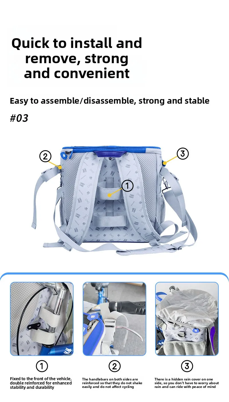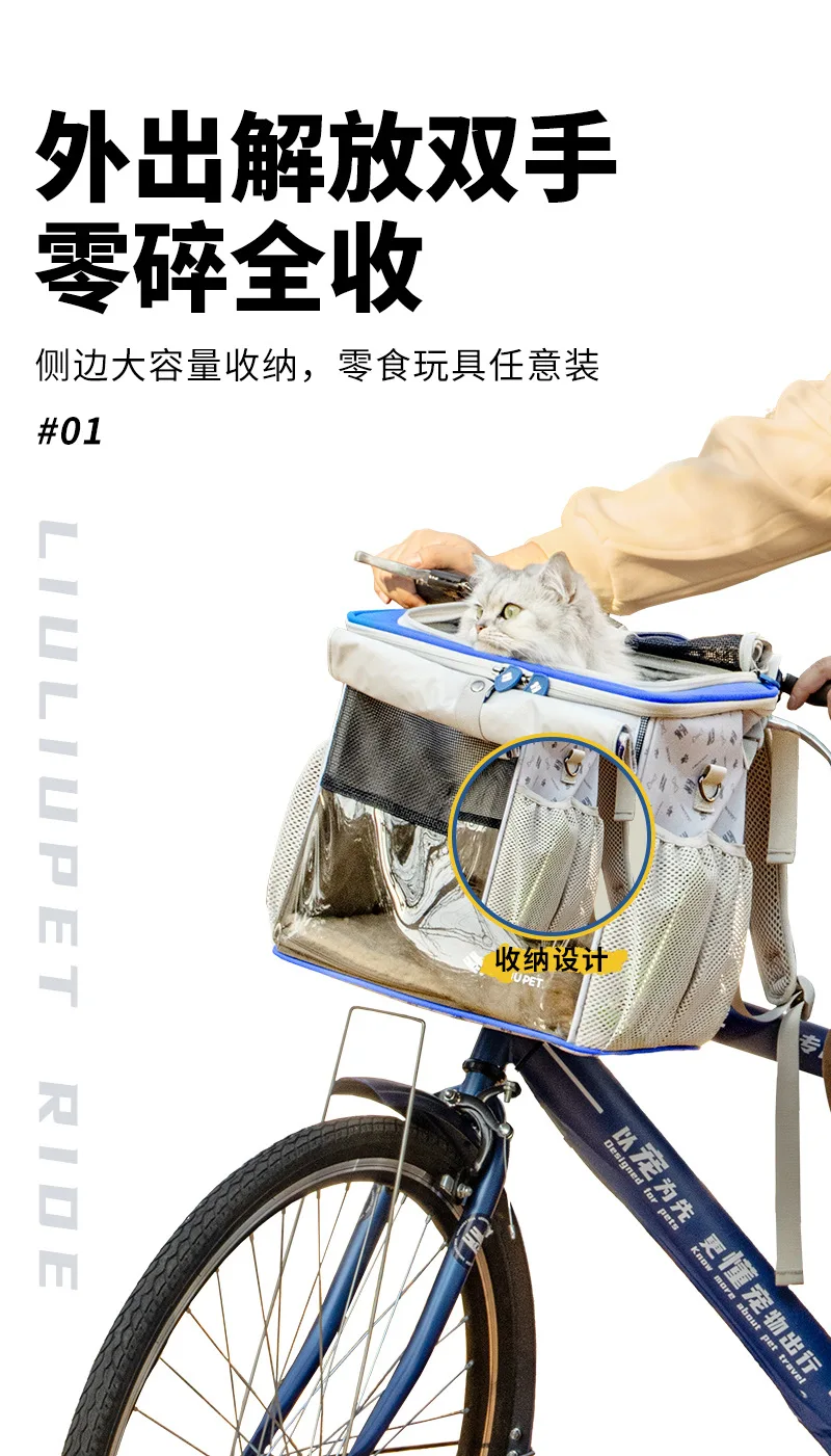 Bolsa de bicicleta para gatos, bolsos de hombro, bolsa de coche para mascotas y perros, bolsas para mascotas al aire libre, almacenamiento desmontable, suministros para gatos