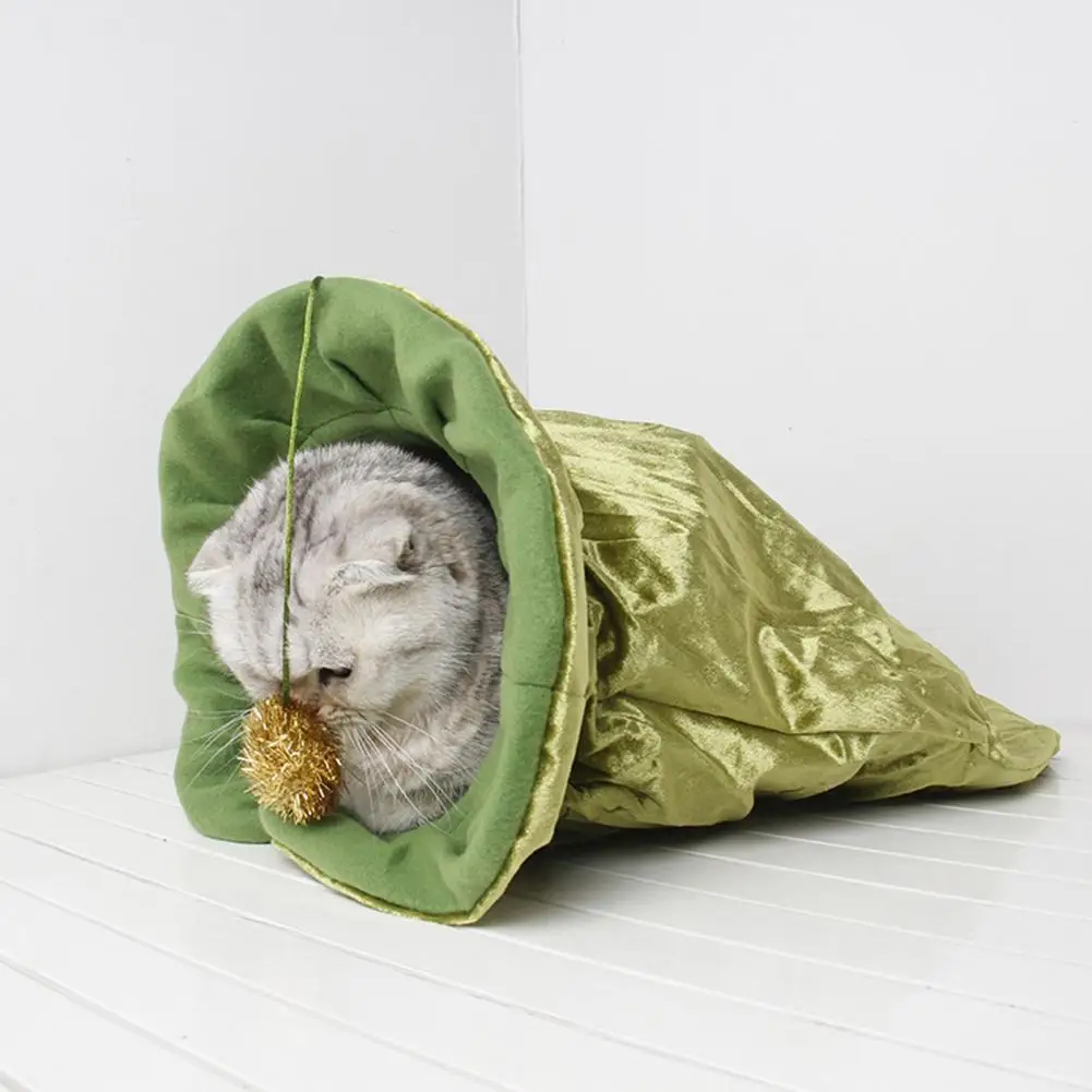 Bolsa cálida y transpirable de apertura redonda para mascotas, Kit térmico exquisito, bolsa de gato de diseño para el hogar, saco de dormir de gran capacidad de tela verde