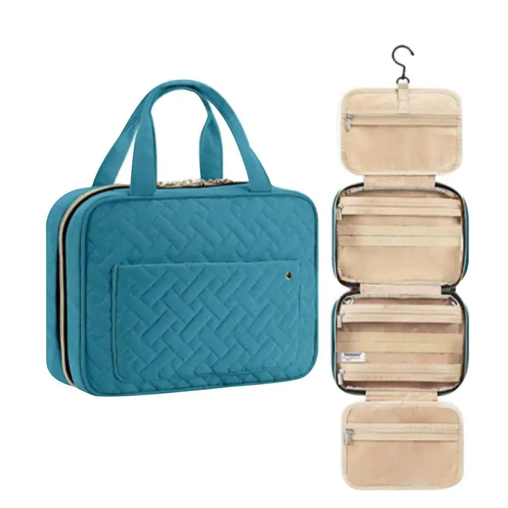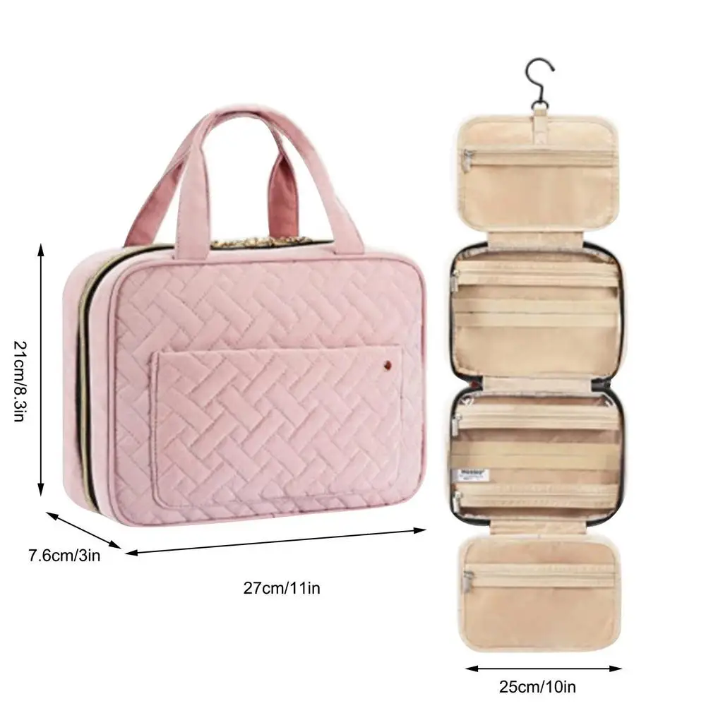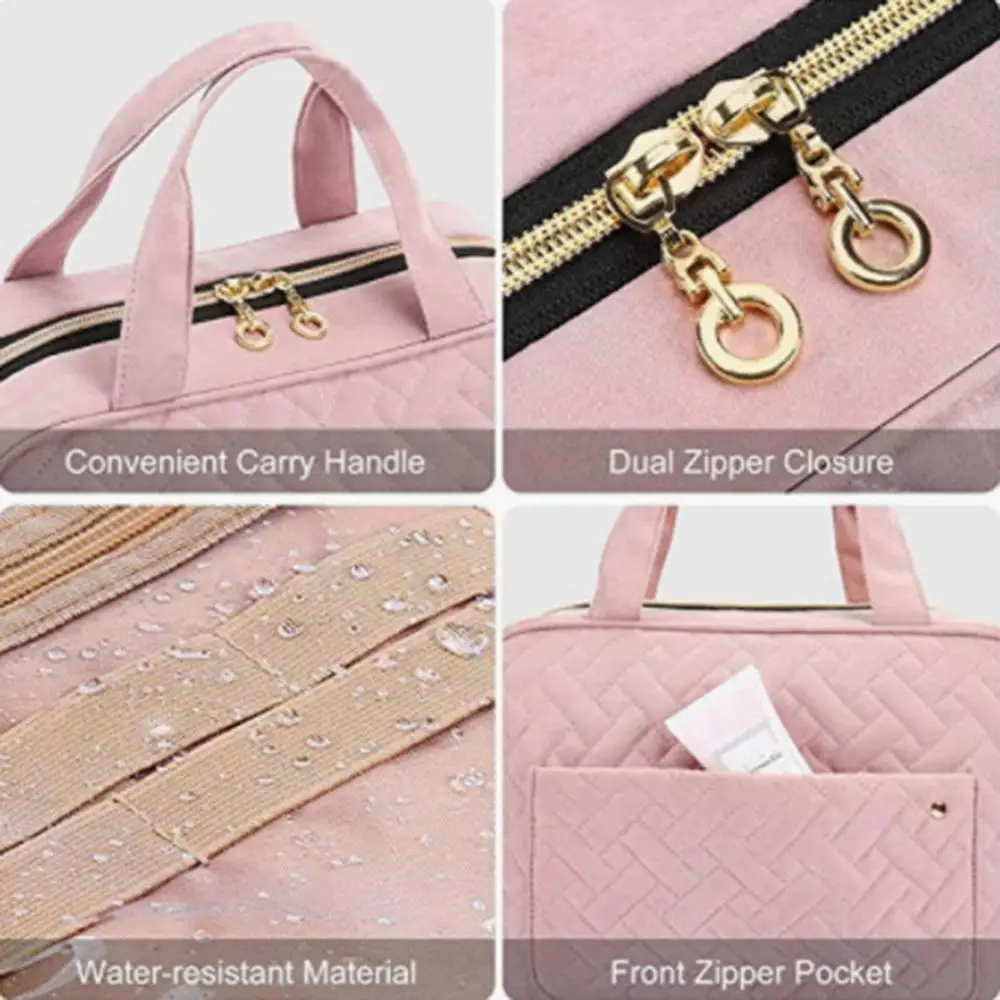 2. Mucho espacio: Esta bolsa de cosméticos de viaje tiene múltiples capas y una gran capacidad para contener todos sus elementos esenciales. Se puede plegar y llevar en la mano, lo que facilita llevarlo consigo a donde quiera que vaya.