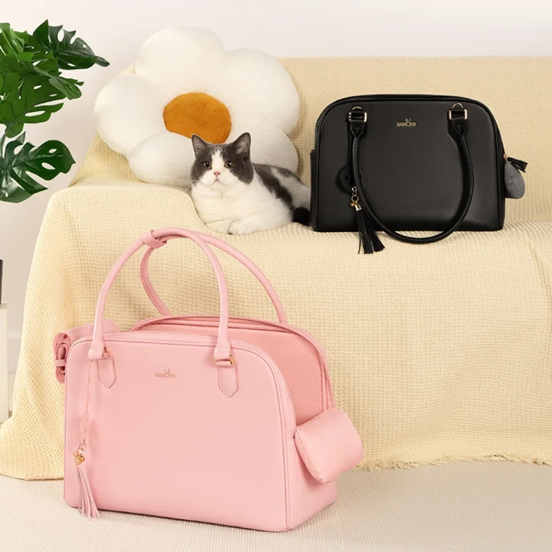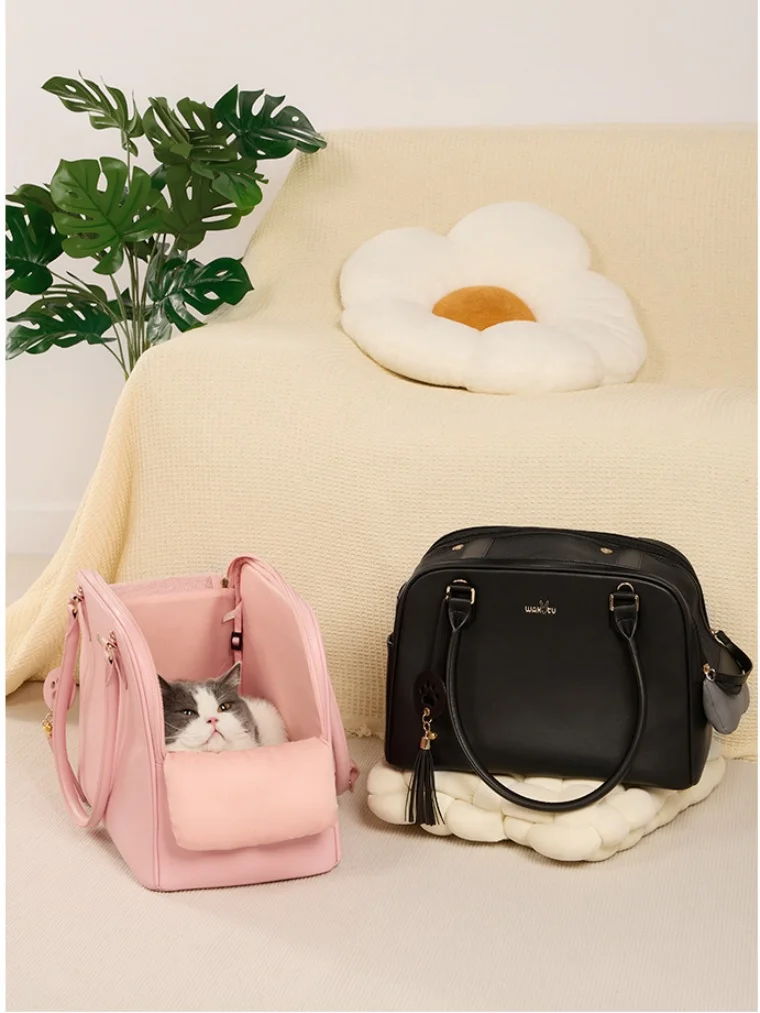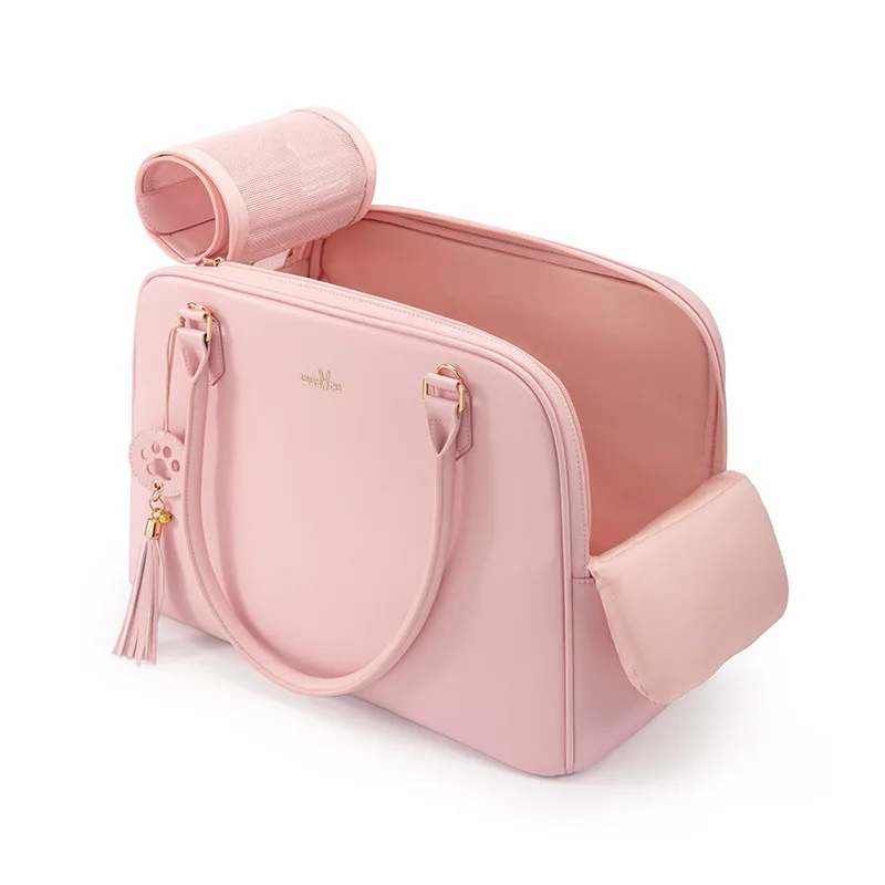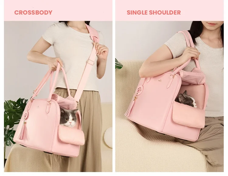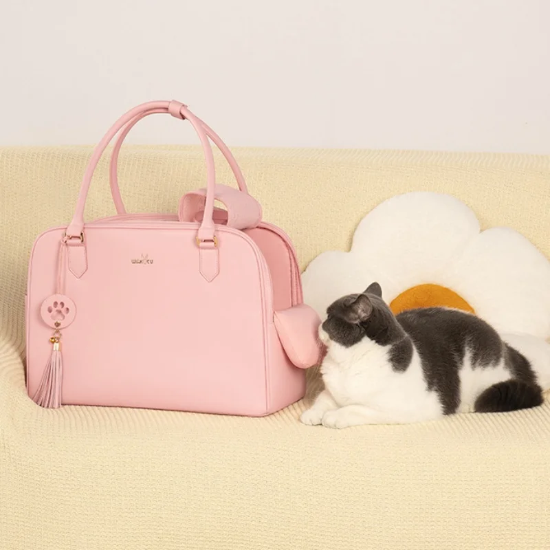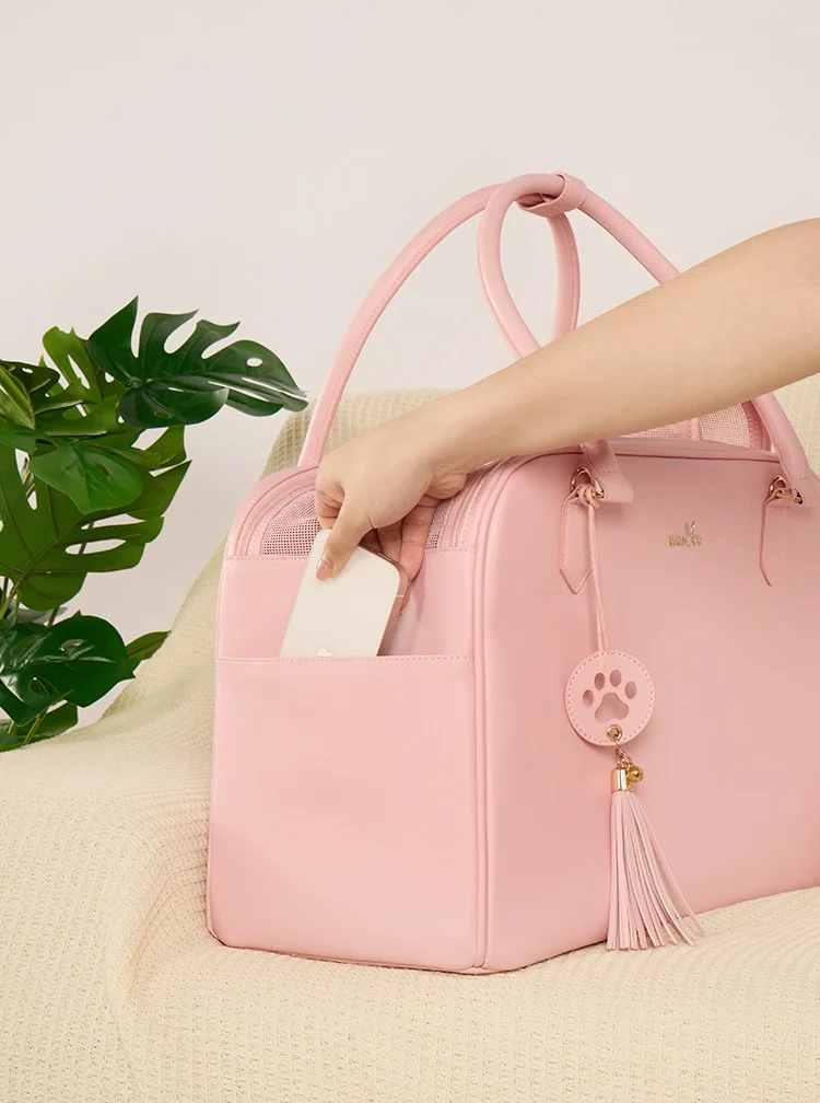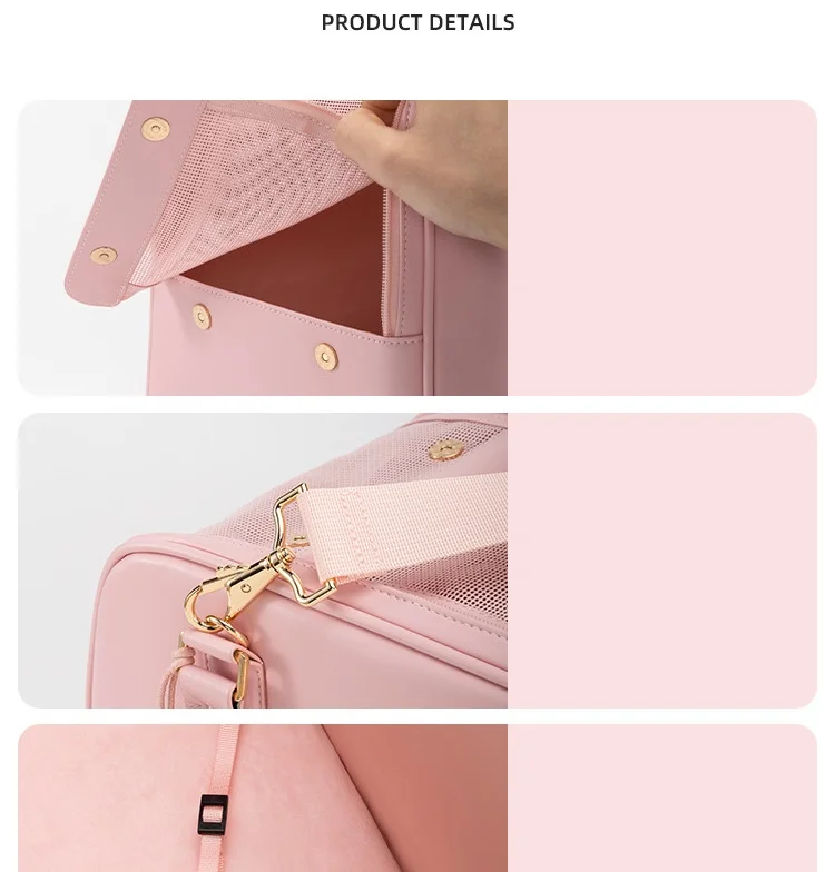 Bolsa de cuero de lujo para gatos, bolsa para mascotas, para cachorros, conejos, bolso de viaje portátil, portabebés cruzados aprobados por aerolínea, color rosa