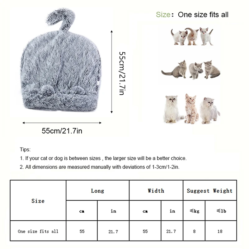 ●Utilice la forma en que la entrada se pueda abrir para facilitar el acceso.Una mascota peluda puede descansar cómodamente con un abrigo de felpa cálido y acogedor.O puedes doblarla en una cama normal para mascotas, sin la funda cálida.