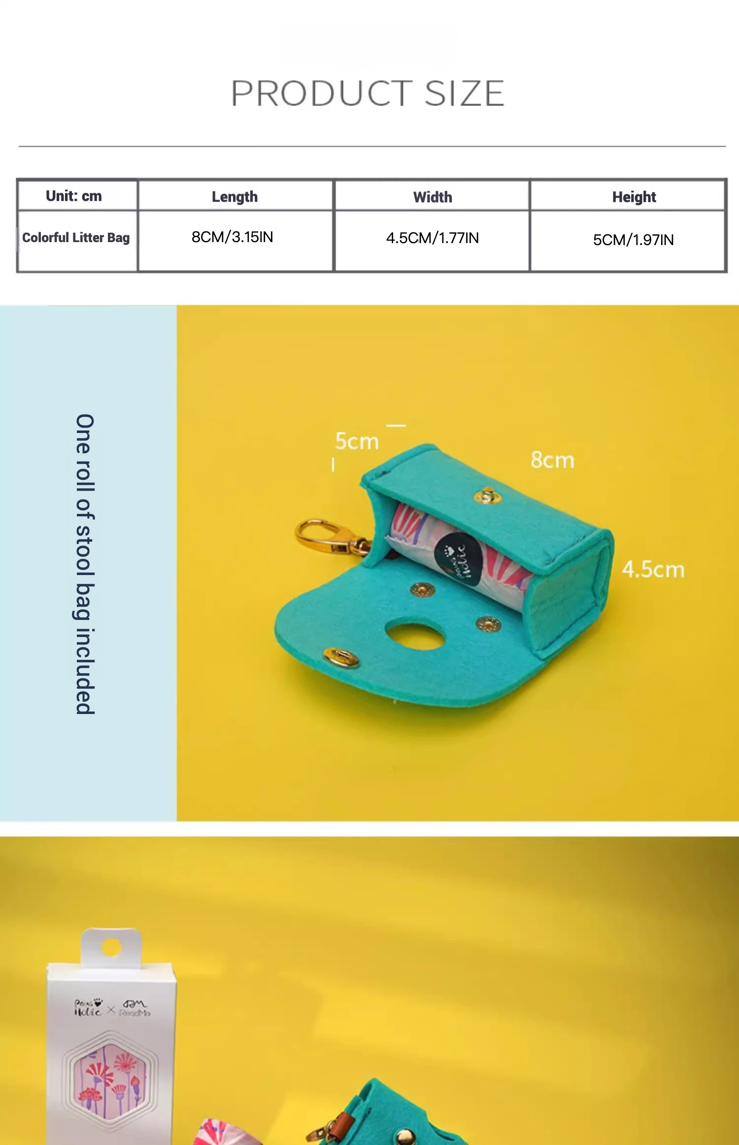 · El paquete incluye: 1 X bolsa de fieltro portátil, 1 X rollo de bolsa para excrementos
