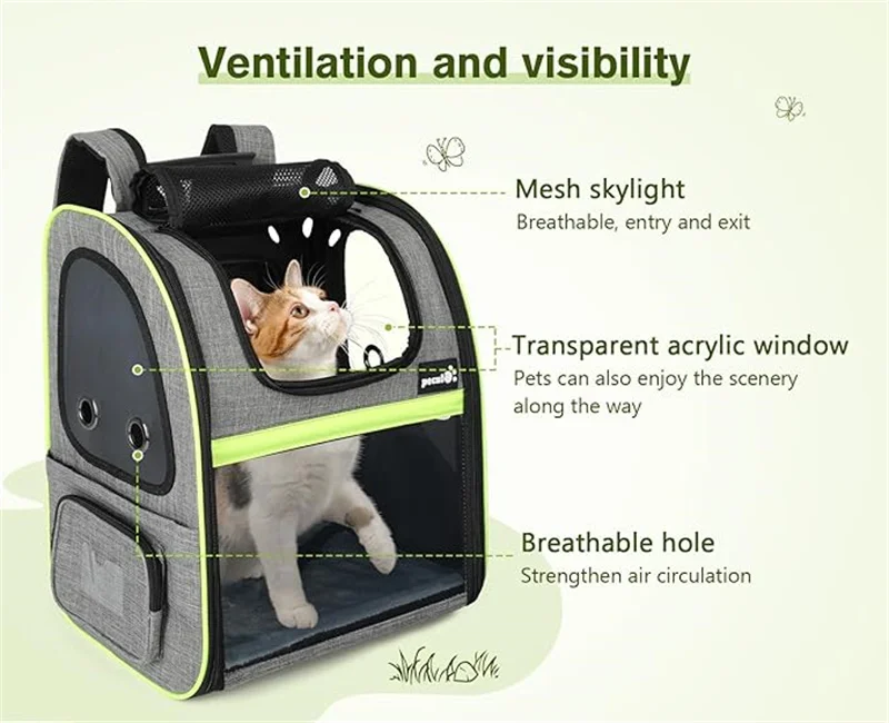 [Adecuado para viajes]-Mochila portátil para mascotas con panel trasero transpirable, correa de hombro ajustable y hebilla de pecho, adecuada para viajes, senderismo, caminar y actividades al aire libre, una verdadera mochila de viaje para gatos.