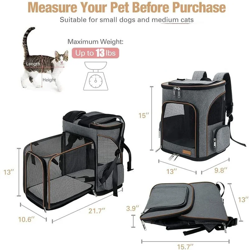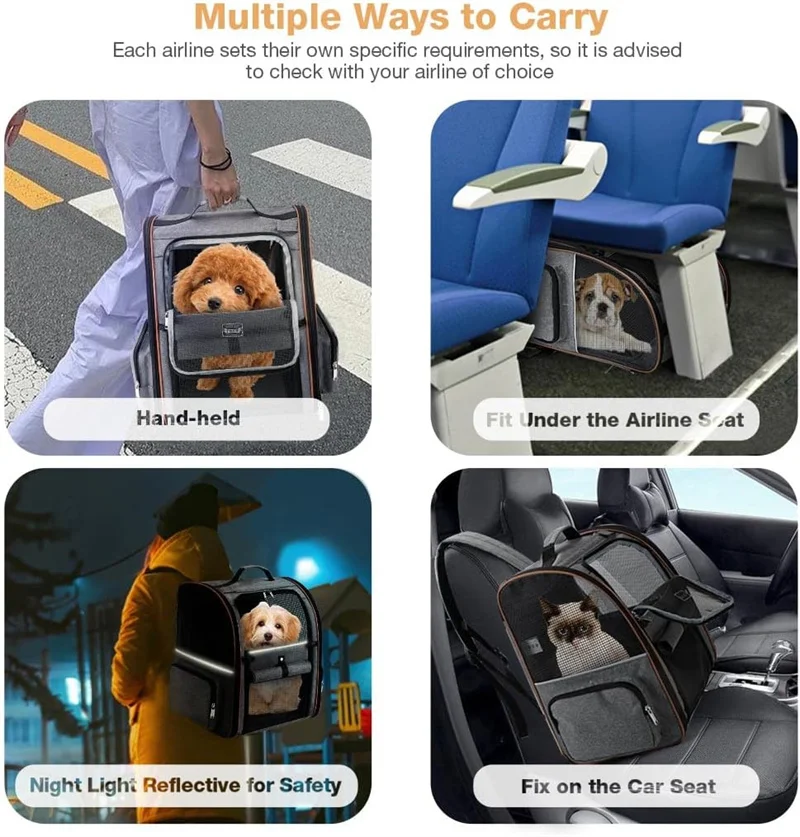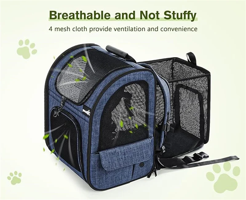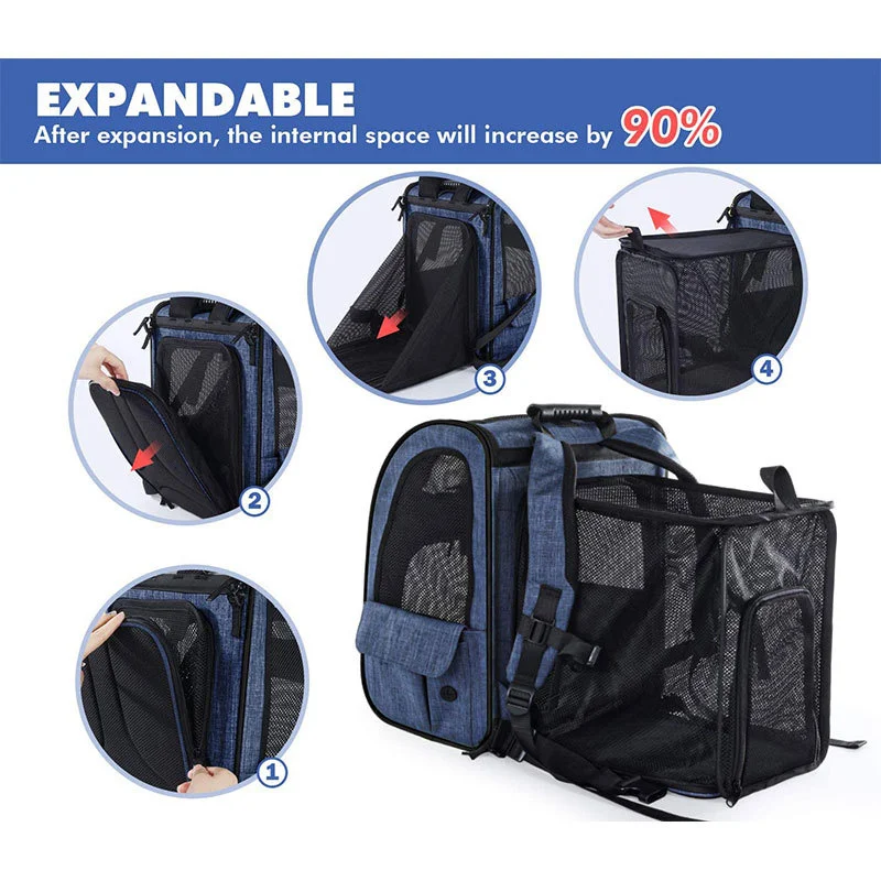 Plegable y expandible: la Mochila para mascotas tiene una espalda expandible, lo que le da a su mascota más espacio para moverse y reducir su ansiedad. El diseño plegable le ayuda a ahorrar espacio cuando no está en uso.