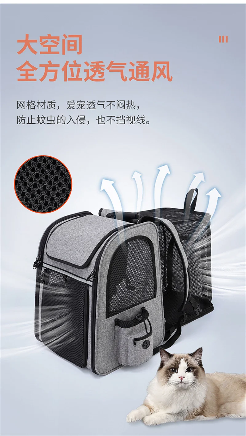 【 Características de alta calidad 】-Hecho de poliéster de alta calidad y malla resistente a los arañazos, esta mochila extensible para gatos es resistente y segura, adecuada para su mascota. 2 bolsillos laterales para almacenar suministros para mascotas, con cinturones de seguridad incorporados para evitar que su mascota se escape.