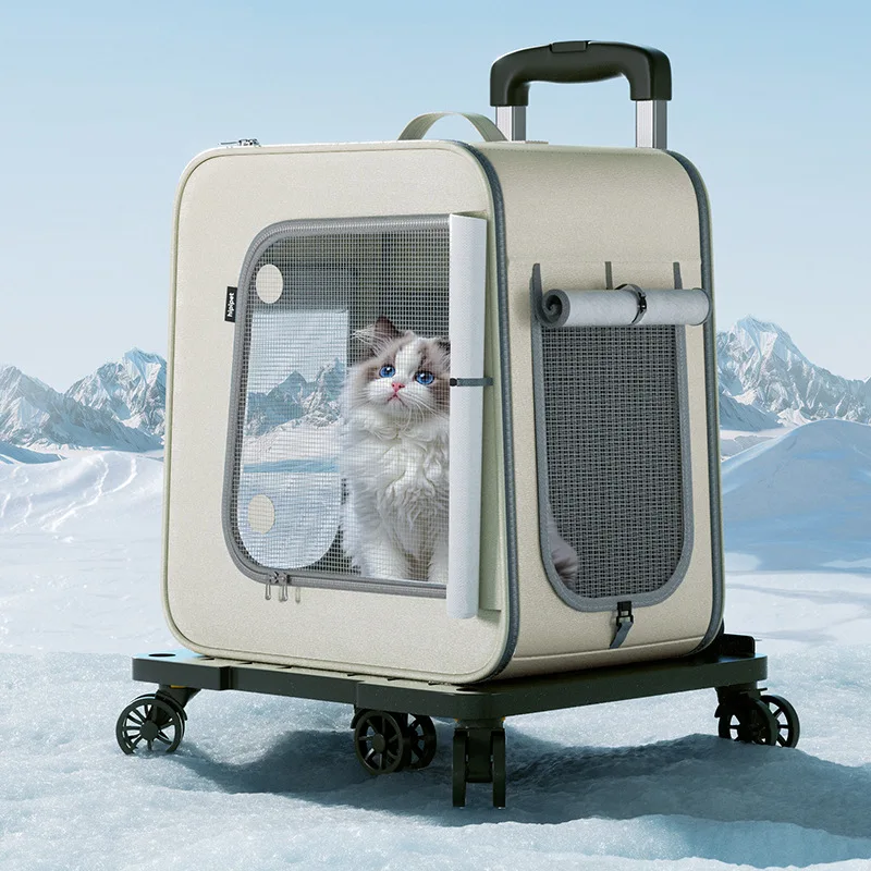 Bolsa para gatos, mochila portátil de gran capacidad para gatos, mochila para mascotas, cubierta de carrito impermeable de cuero para mascotas, puede enfriar