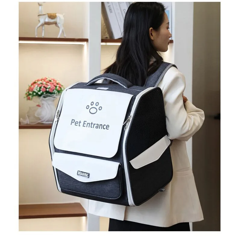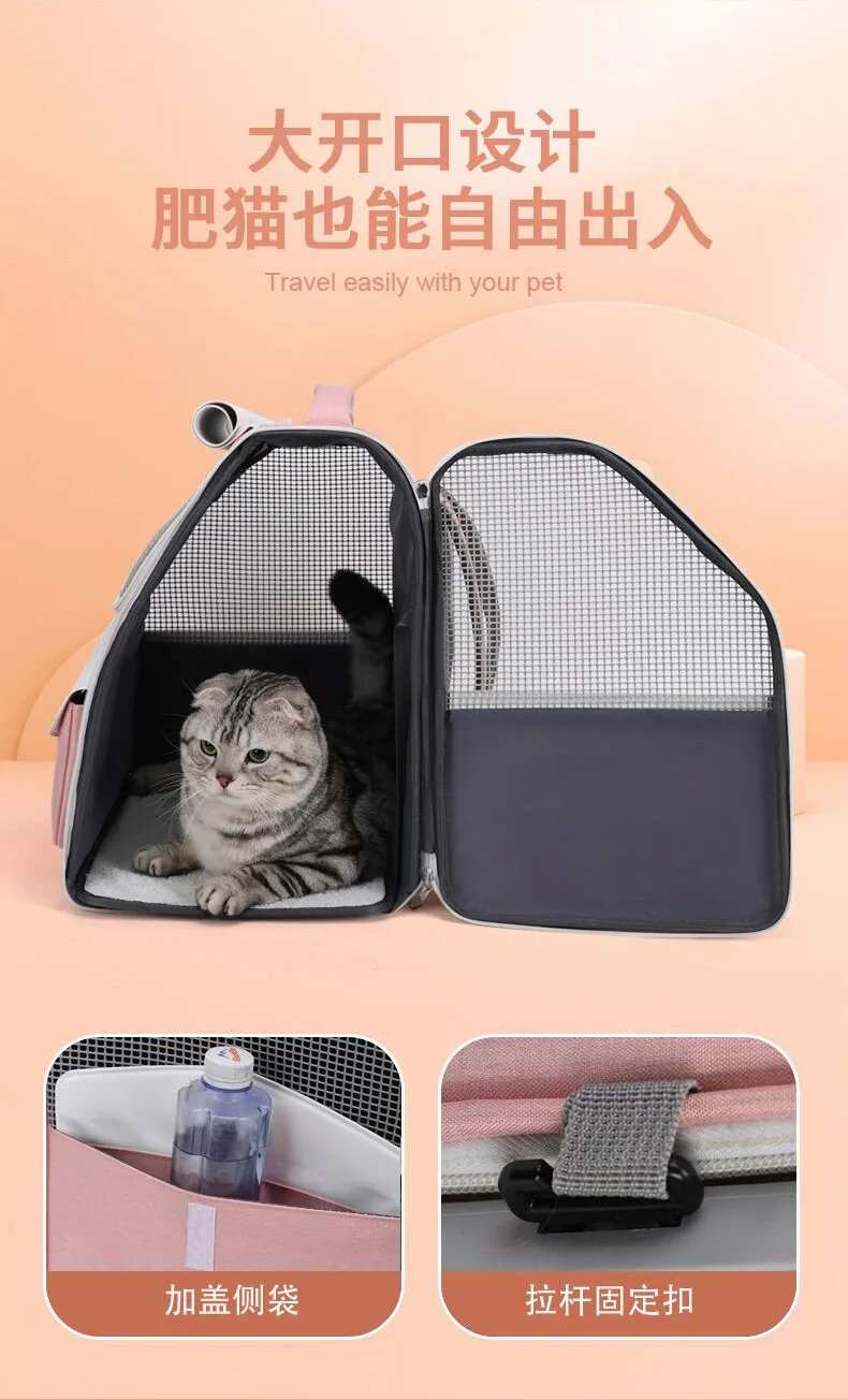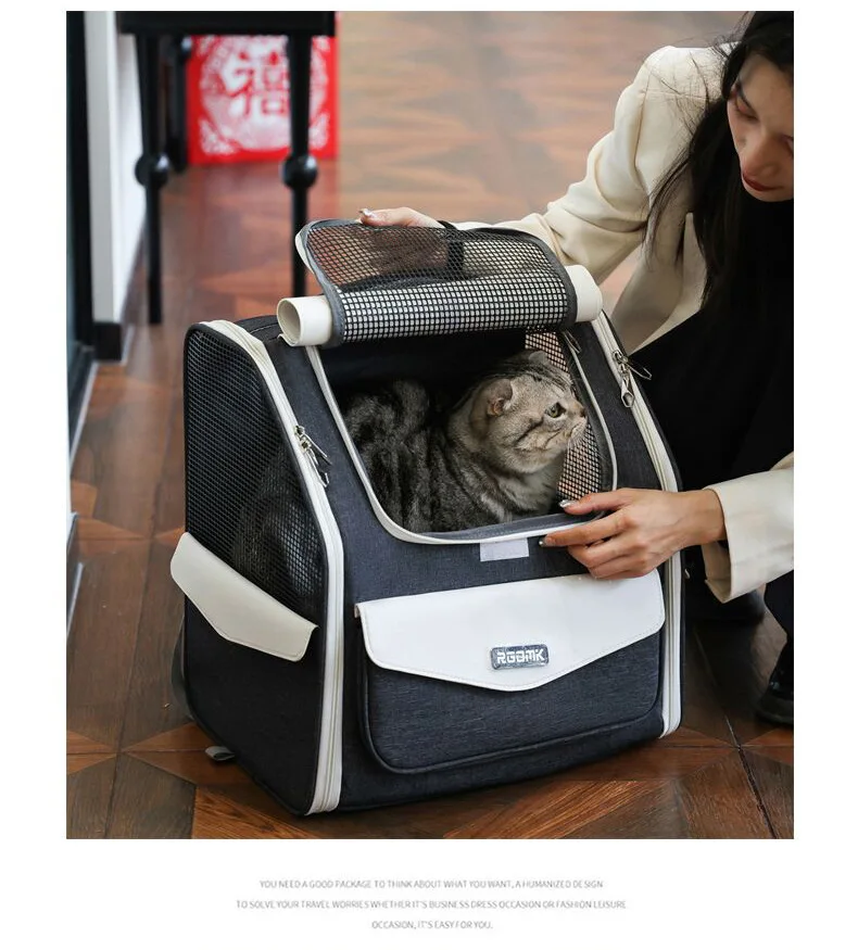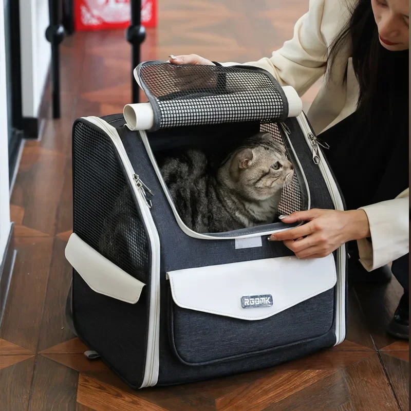 Bolsa para gatos, mochila portátil, gran espacio, barra de amarre transpirable, bolsa para mascotas, suministros plegables para mascotas