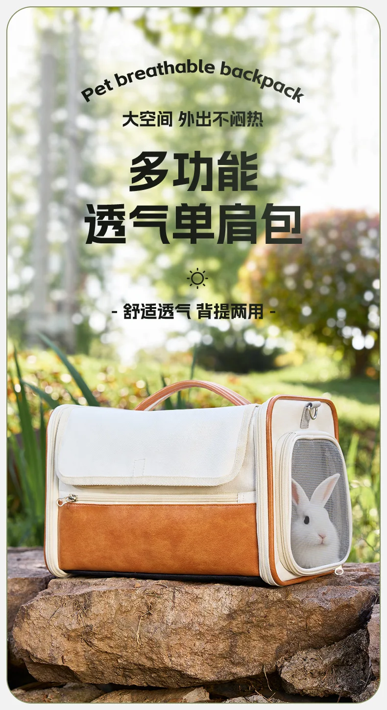 Bolsa para gatos portátil para gatos y conejos, bolsa portátil para mascotas de gran capacidad, suministros de mochila para mascotas de un solo hombro