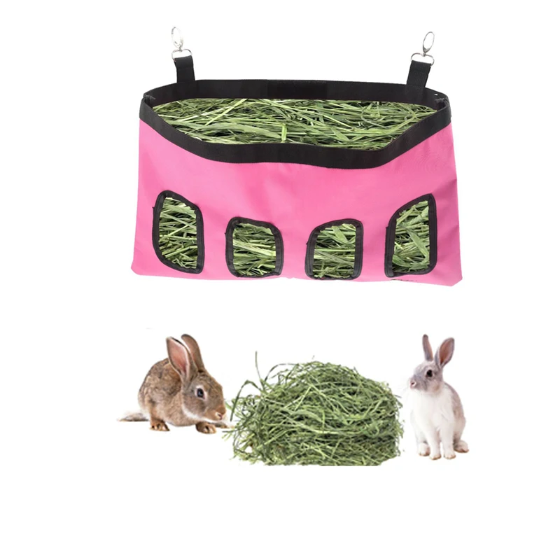 Bolsa de heno colgante para conejillos de indias, alimentador de animales pequeños, dispensadores de alimentos para conejos, accesorios para jaulas, bolsa de alimentación para mascotas, 2/4 agujeros