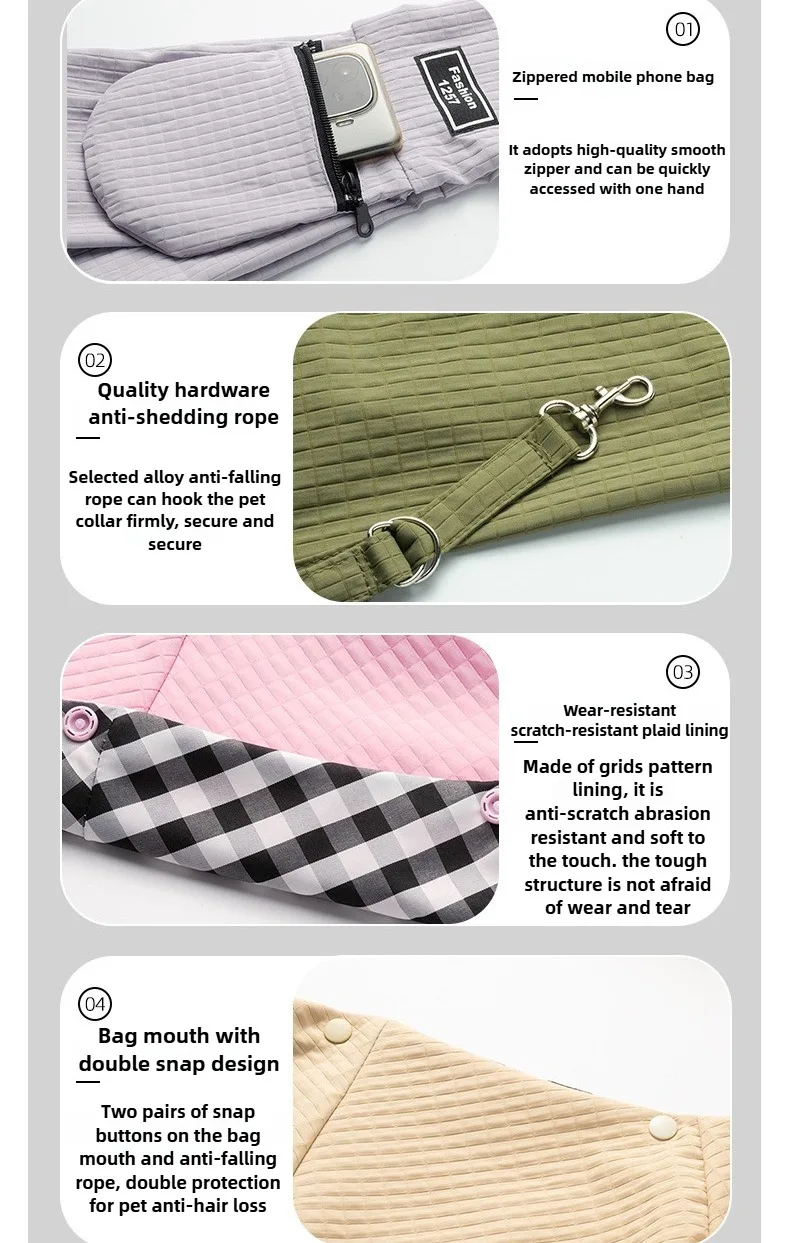 Diseño abrazante, viaje cómodo con mascotas. Tejido impermeable y antiestático. Cuerda anticaída de aleación seleccionada Bolsillo lateral con cremallera, fácil de guardar teléfonos móviles, llaveros, bocadillos para mascotas y otras cremalleras suaves con telas impermeables, es más sin preocupaciones llevar a las mascotas cuando sales. Atención: 1. Debido a las diferentes herramientas de medición, la medición manual tendrá un error de 1-2 cm. ¡El tamaño específico recibe el tema real! 2. Disparo físico, debido a la diferente luz de disparo, la pantalla puede tener alguna diferencia de color, ¡consulte el tema real!