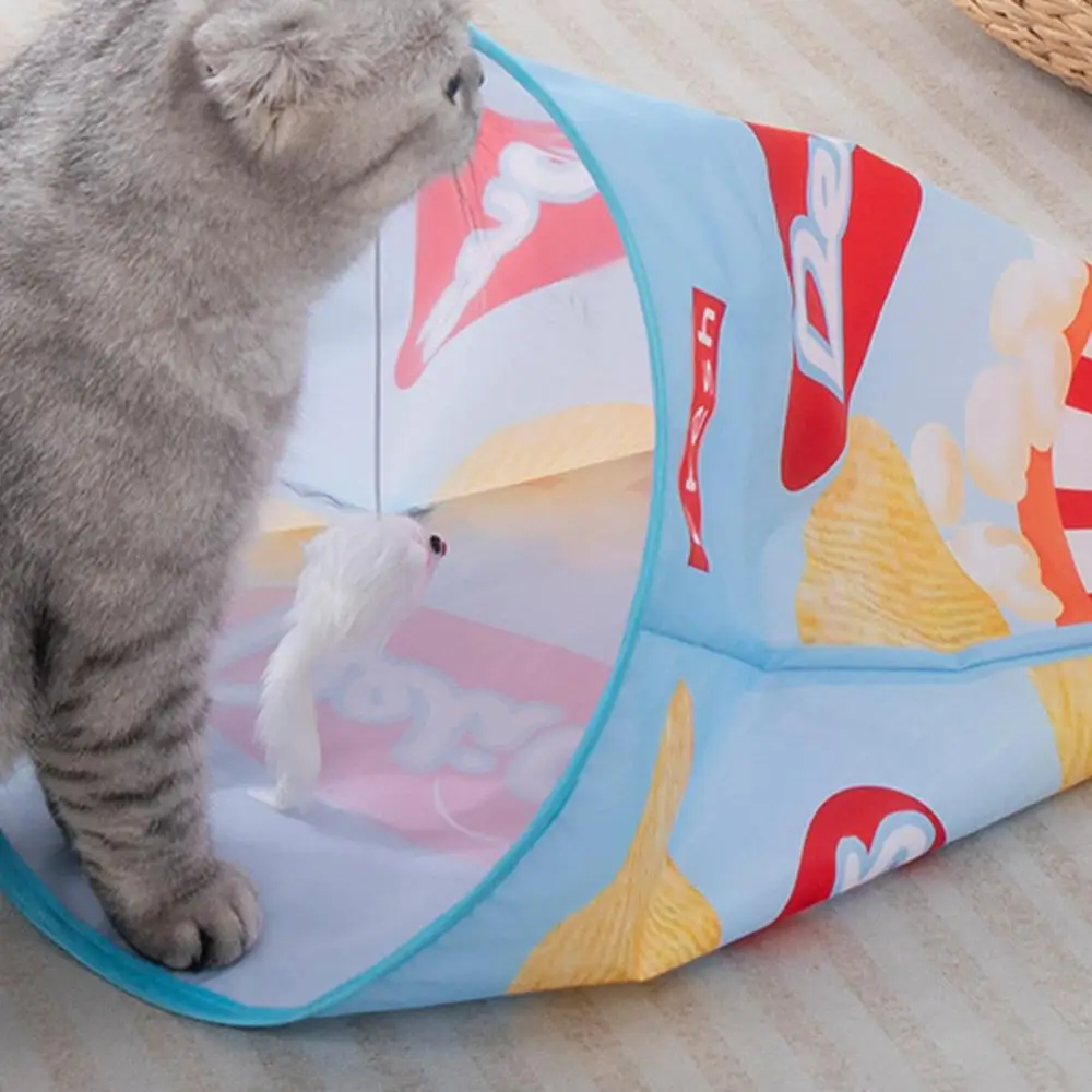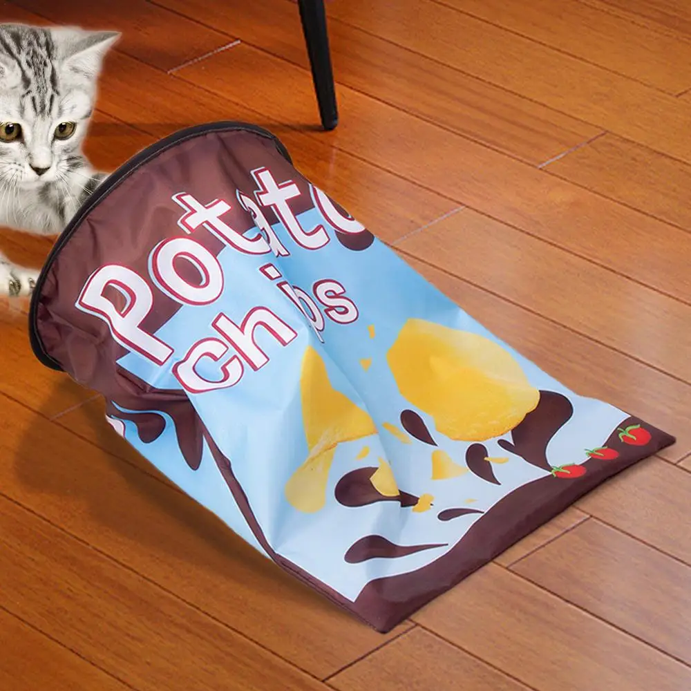 1. Divertido y atractivo: se asemeja a una bolsa de patatas fritas, este túnel de juguete plegable para gatos proporciona a su compañero peludo una emocionante actividad de juego, a diferencia de cualquier túnel tradicional.