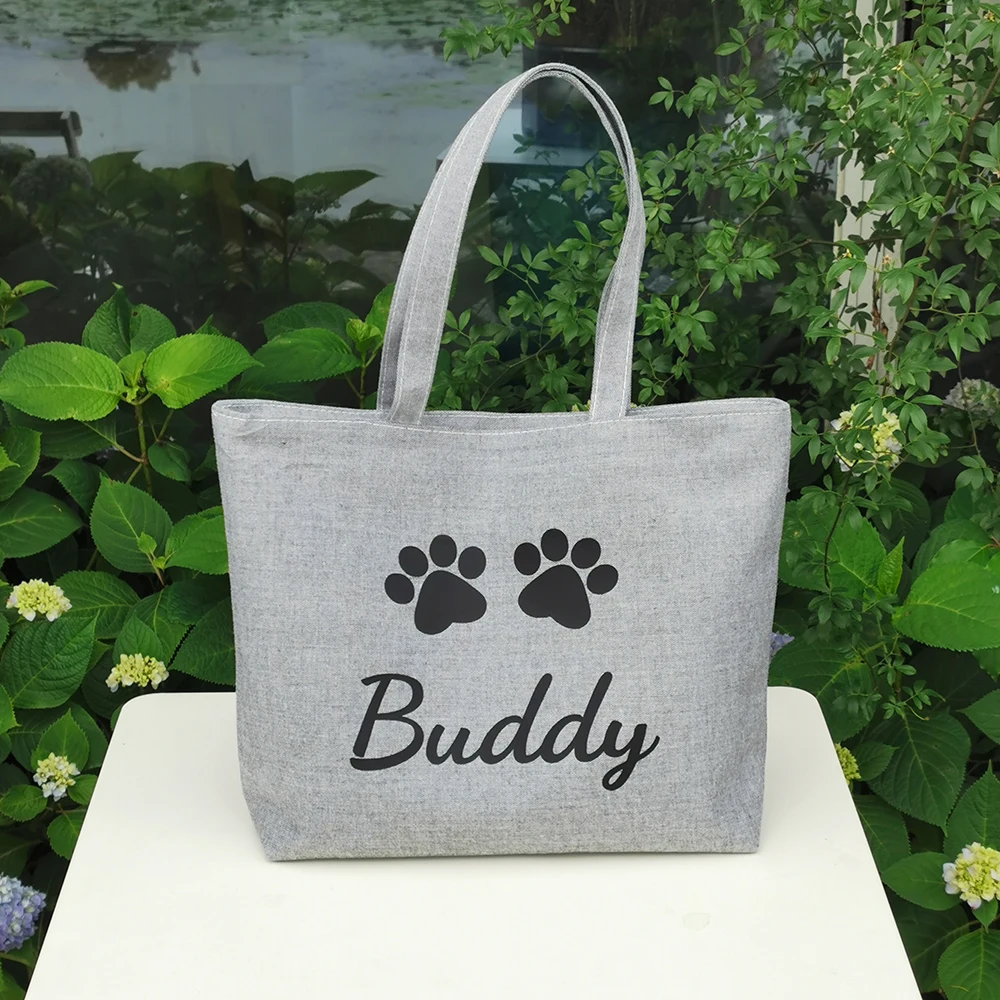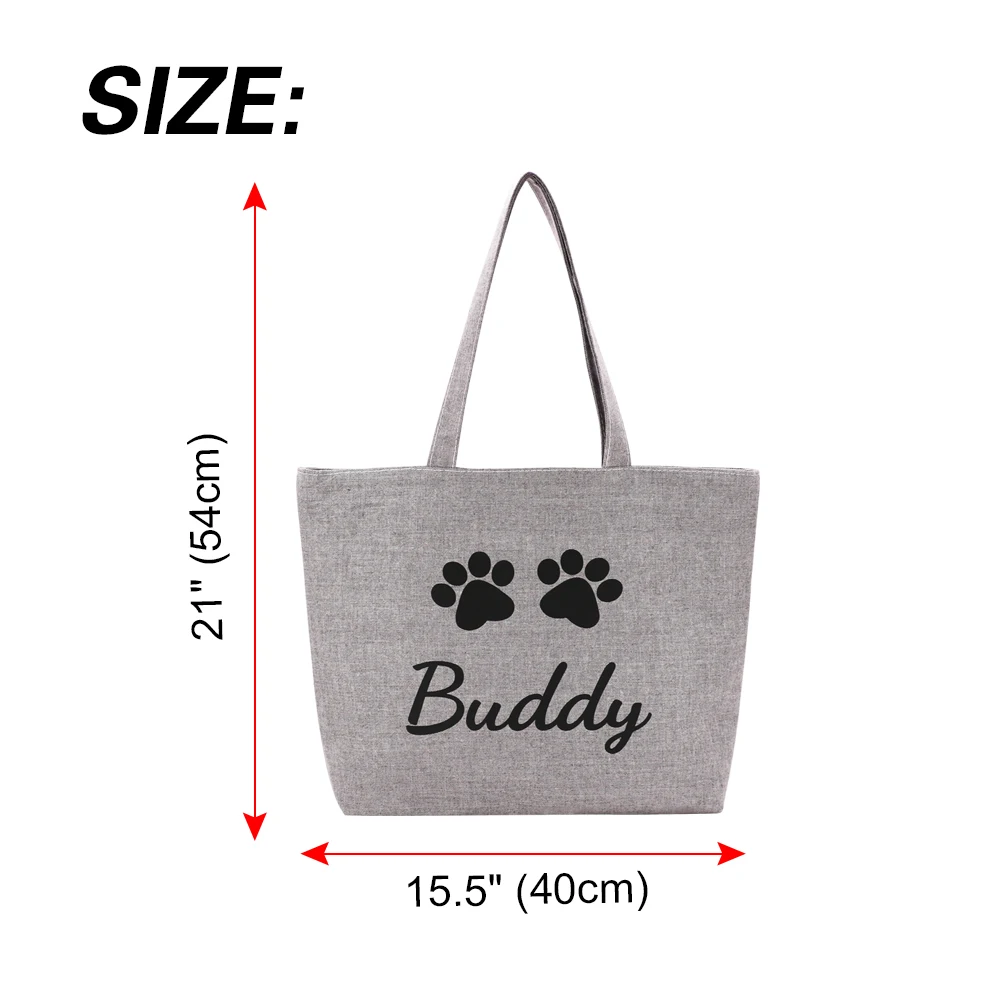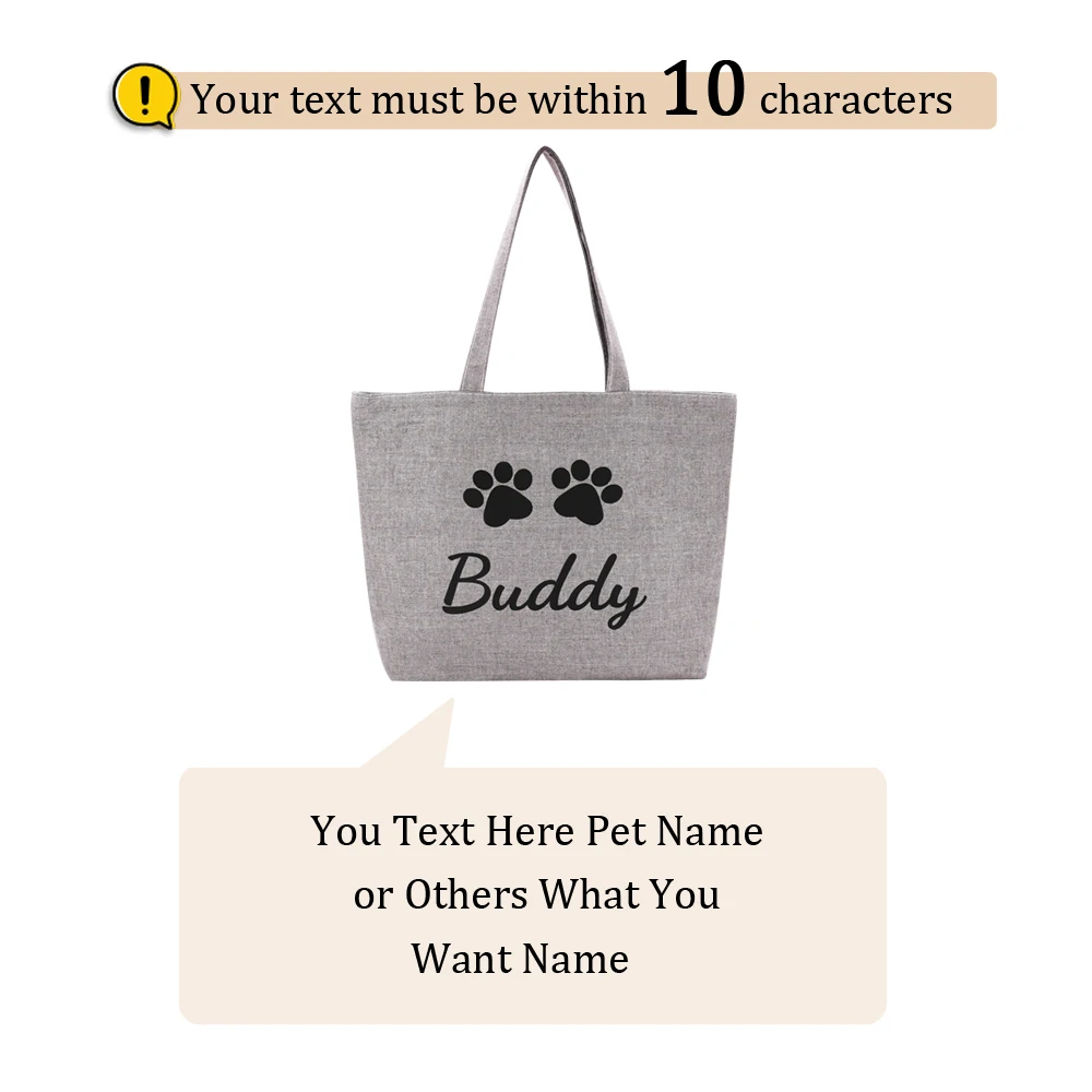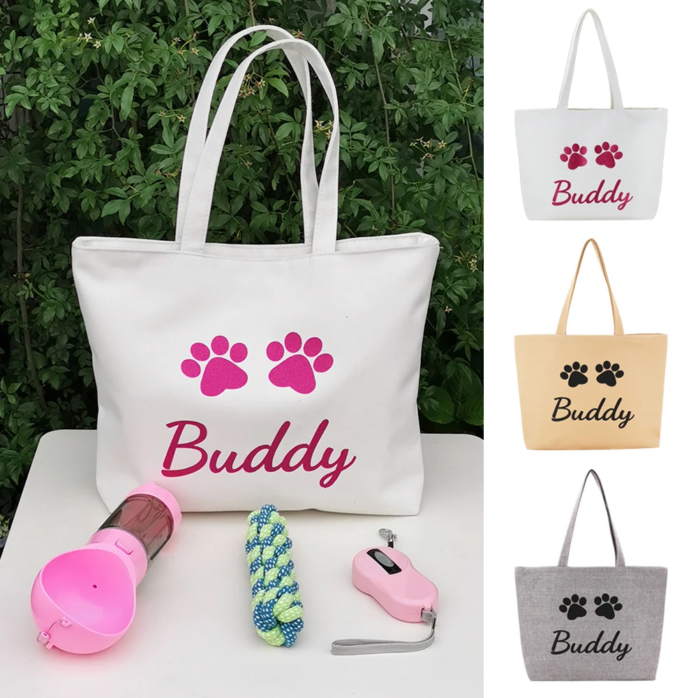Bolsa de mano de lona personalizada para perros, bolsa de viaje personalizada con el nombre de su mascota para perros, bolsa portátil para botella de aperitivos para viajes al aire libre