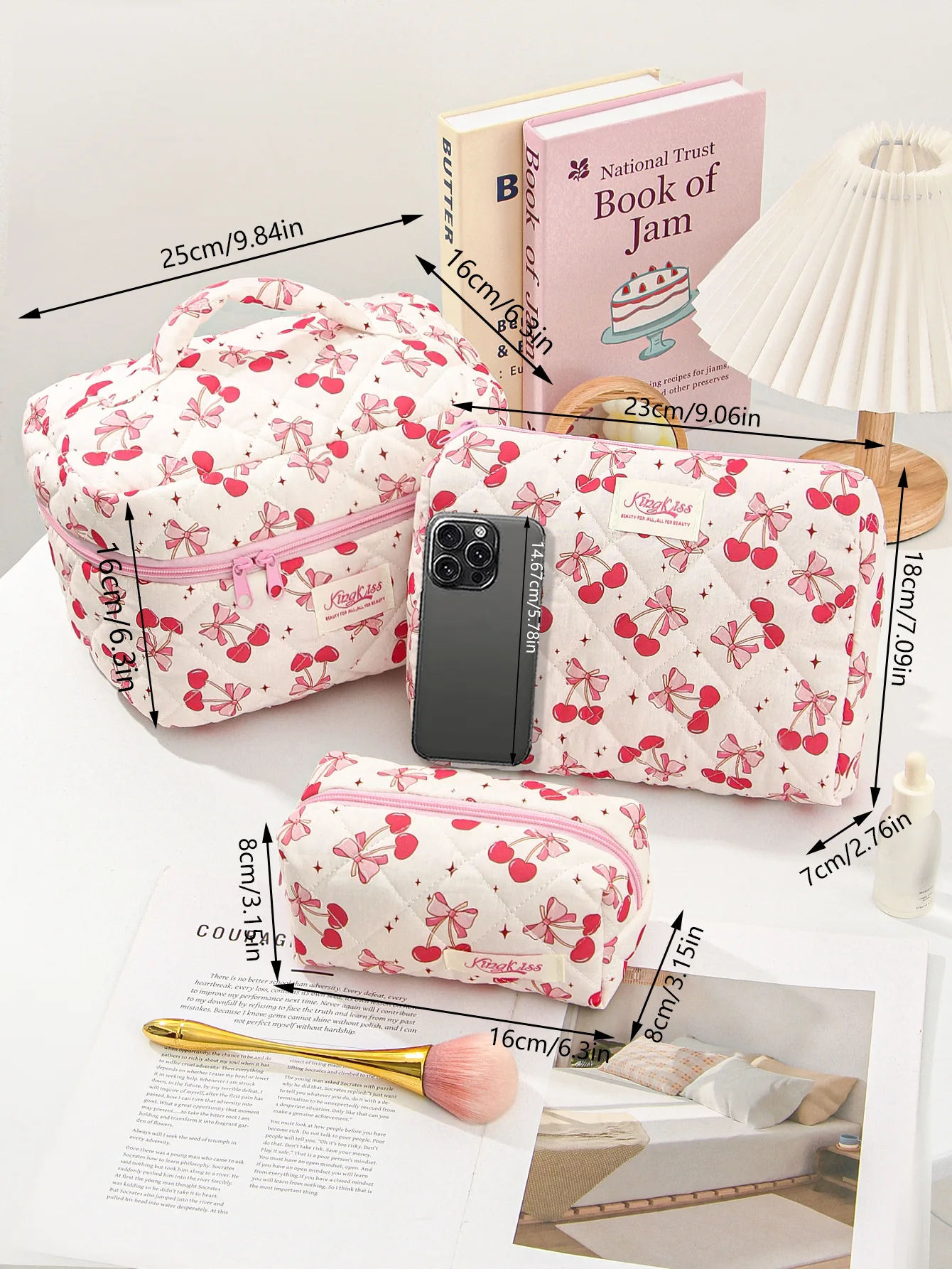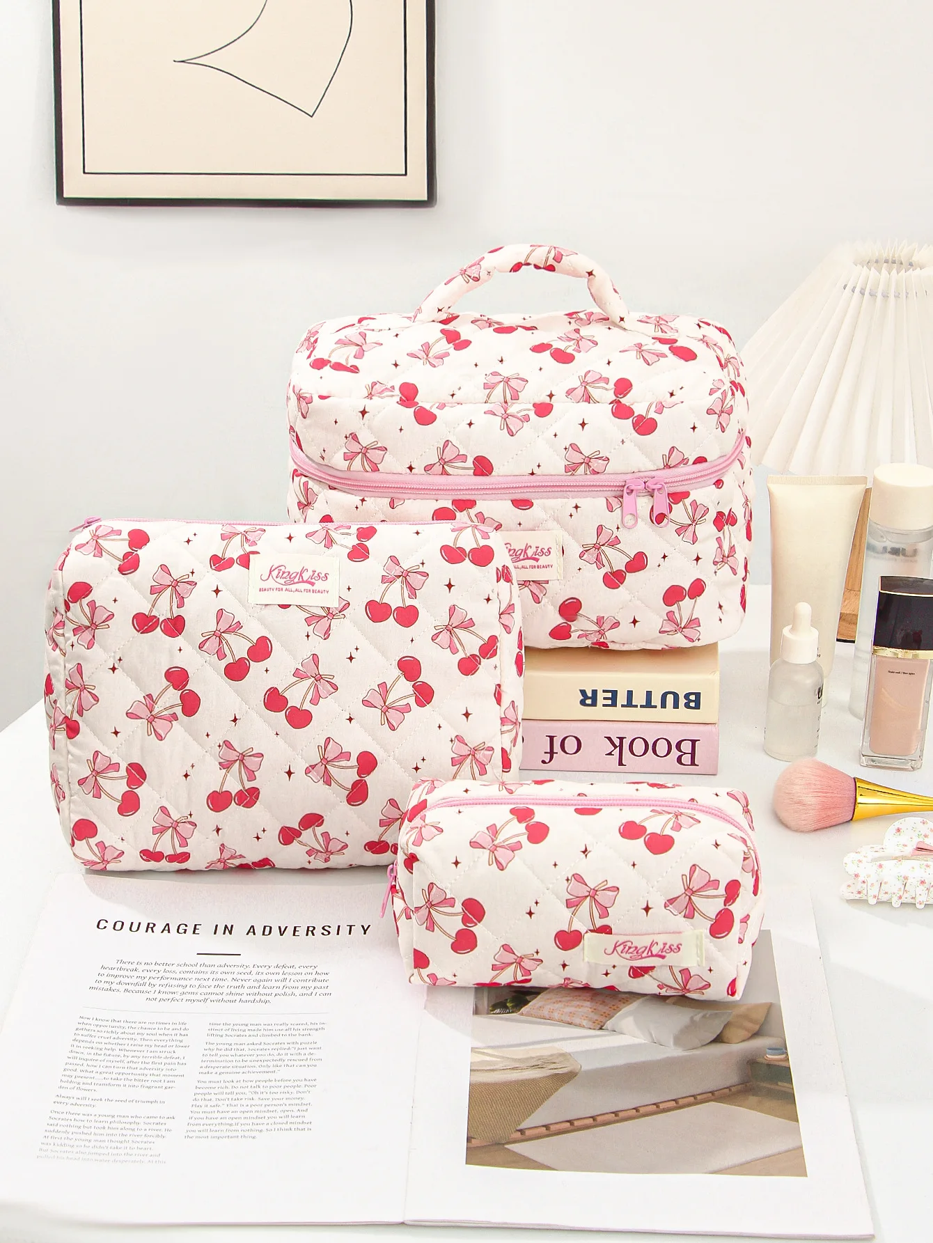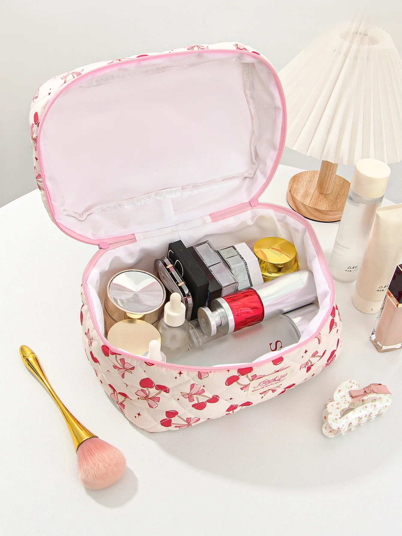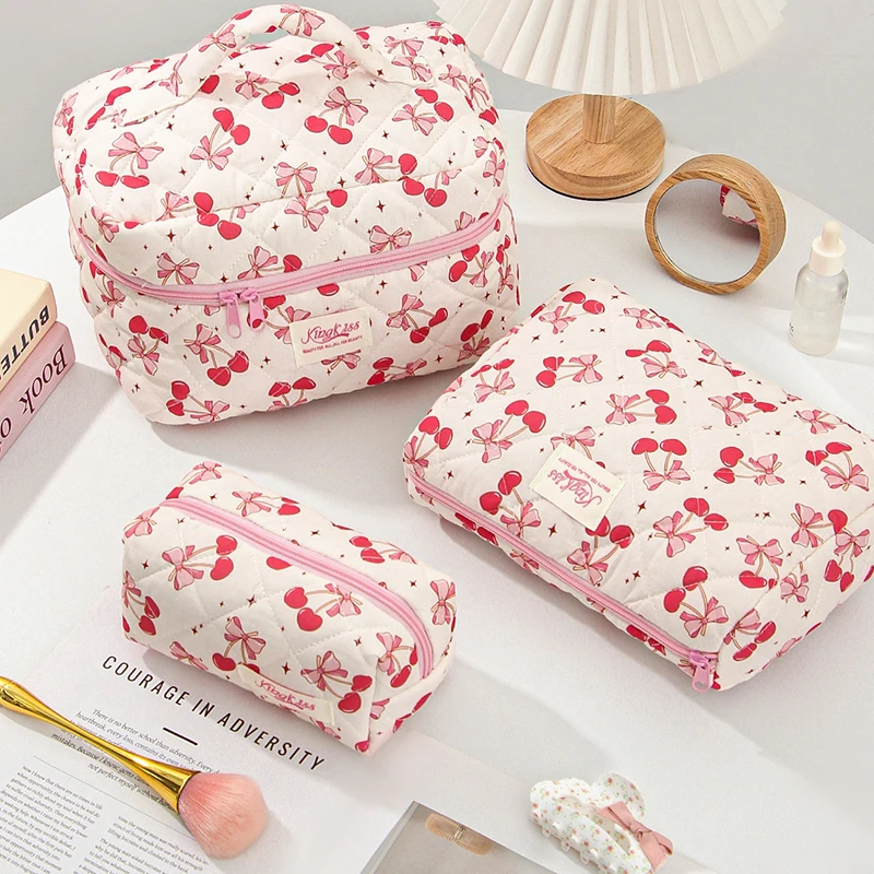 Bolsa de maquillaje de algodón acolchado para mujer, organizador de cosméticos con cremallera, bolso de tela con forma de caja, estuche de aseo portátil para niñas, 1 Uds.