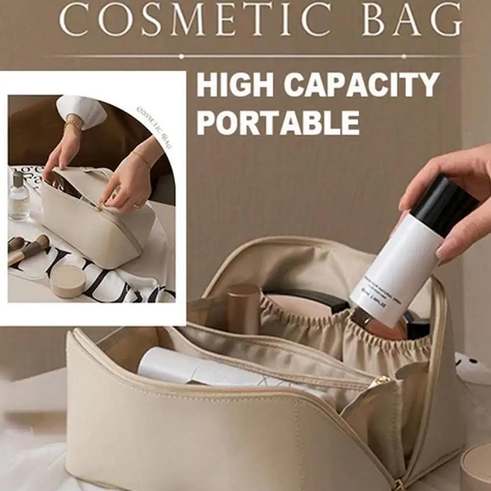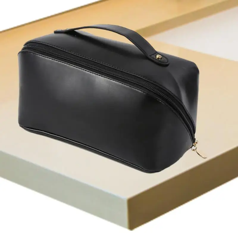 1. 【Material fiable】El exterior especial resistente al agua evita que los productos internos se mojen. La bolsa de viaje para maquillaje está hecha de tela de cuero PU, fácil de limpiar.