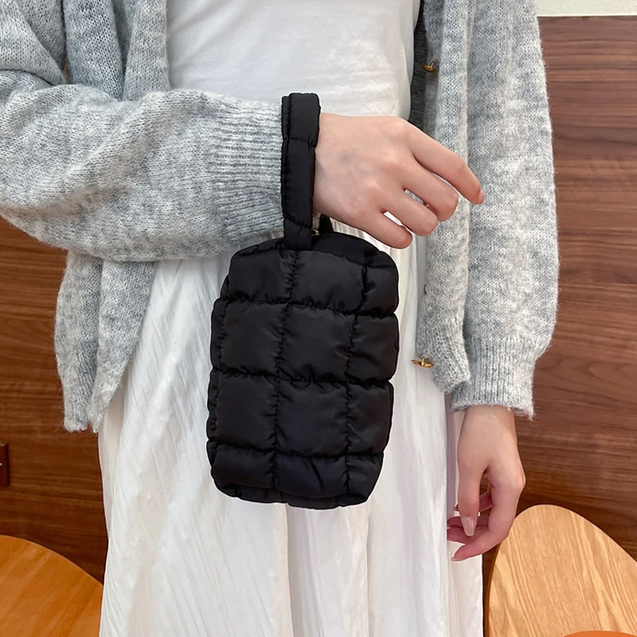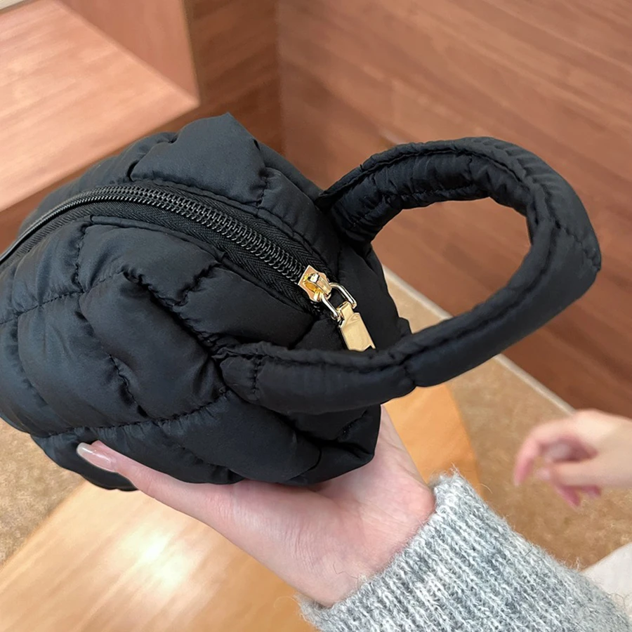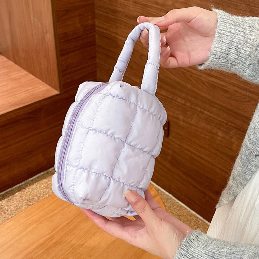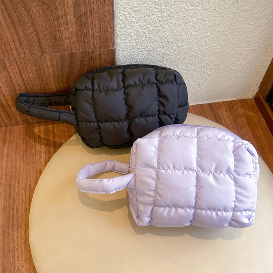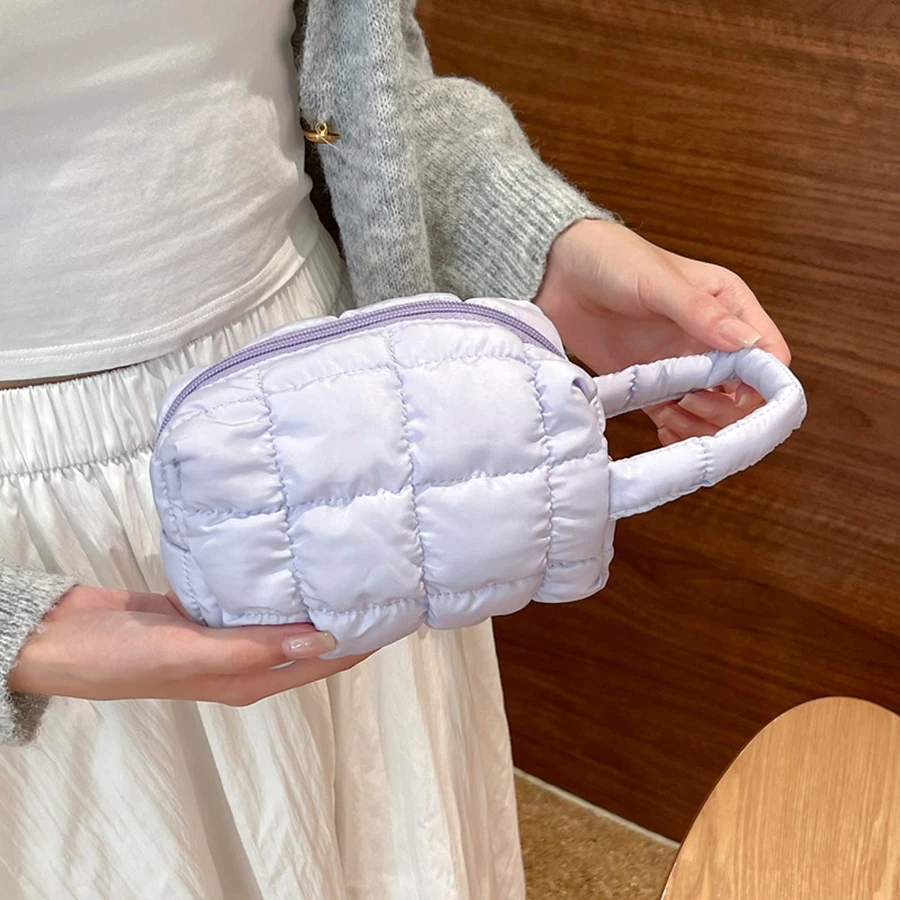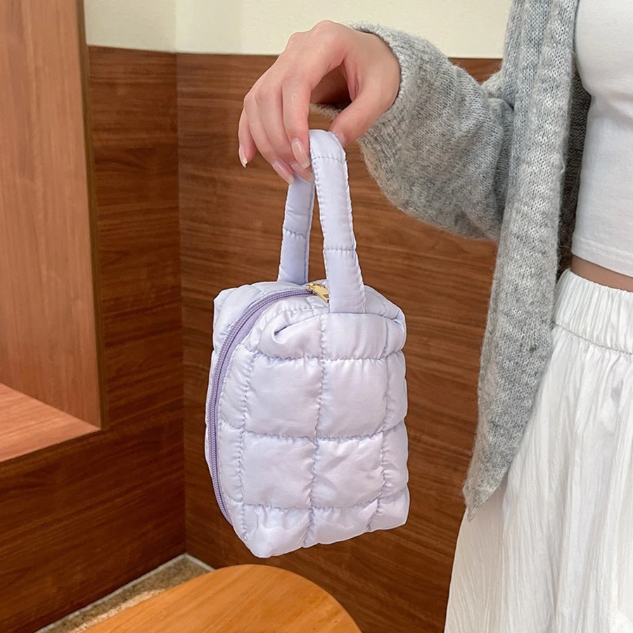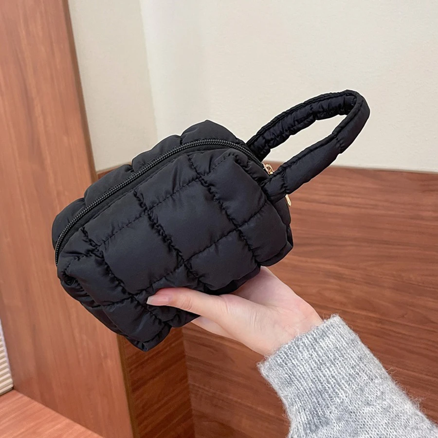 Bolsa de maquillaje de poliéster acolchada, gran capacidad, unisex-adulto, organizador de mano portátil, sin perfume, patrón de cuadrícula de moda