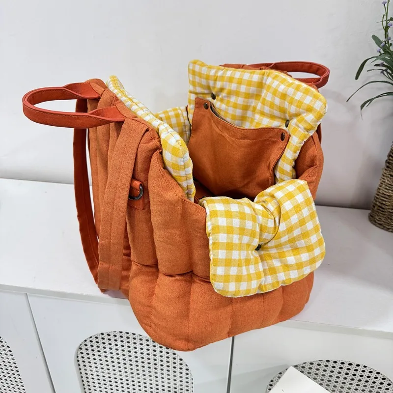 Descripción: Bolso para mascotas de gran capacidad con forro a cuadros, bolso para mascotas, bolso para gatos, bolso para salir, bolso para coche