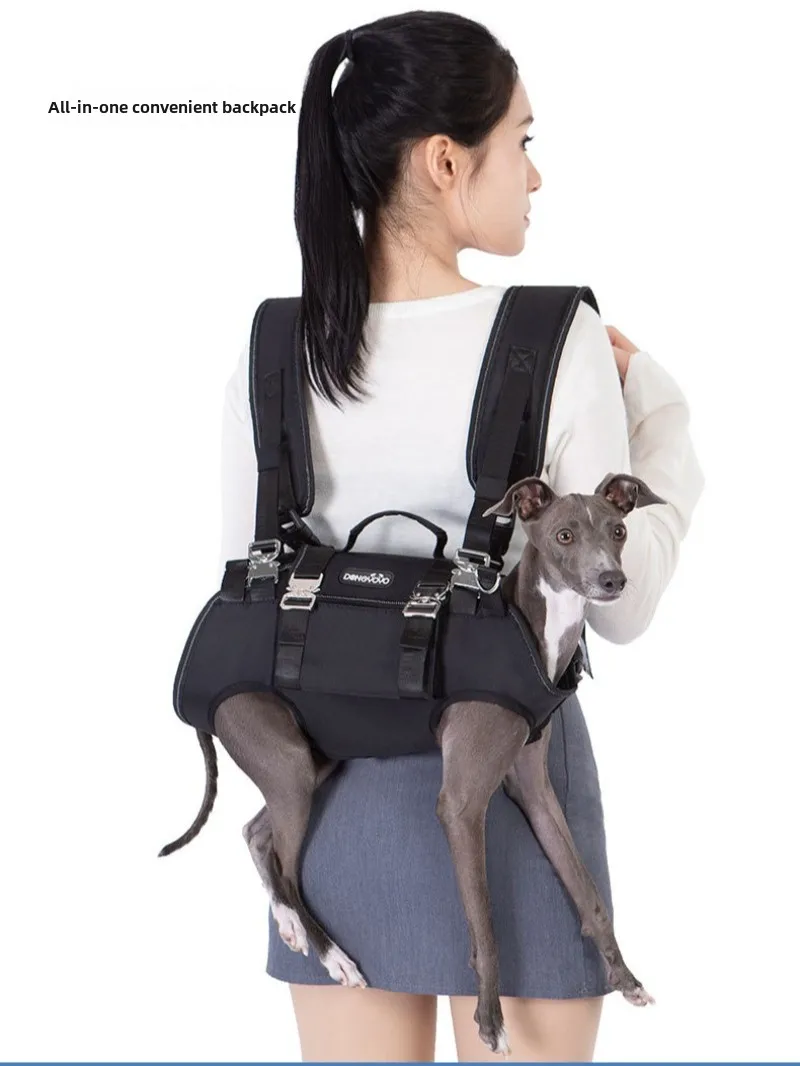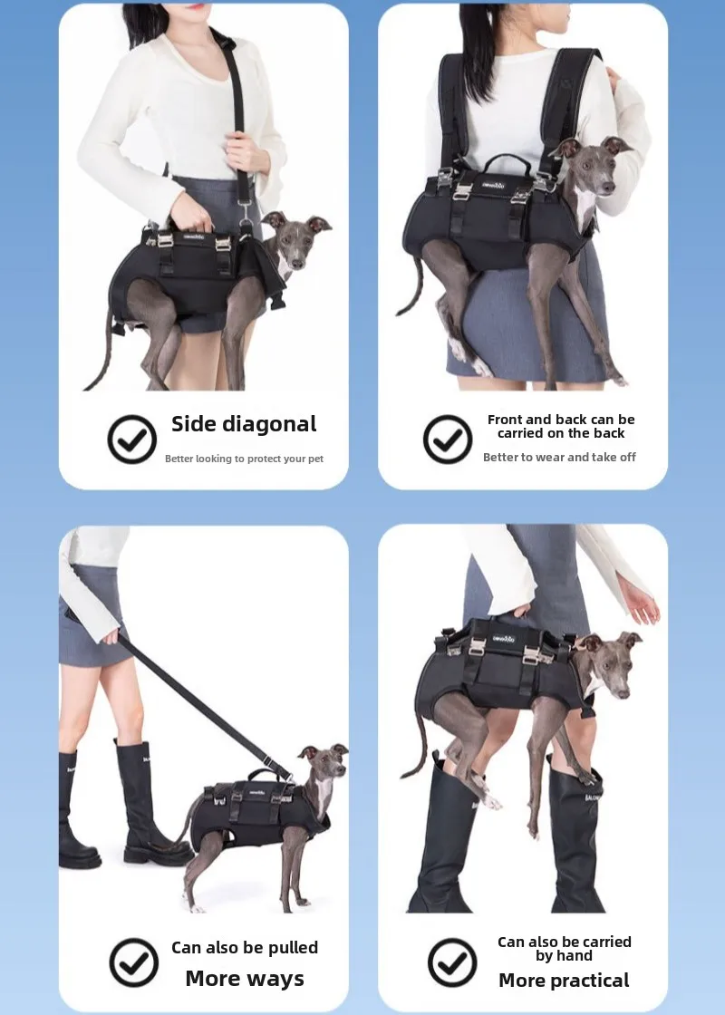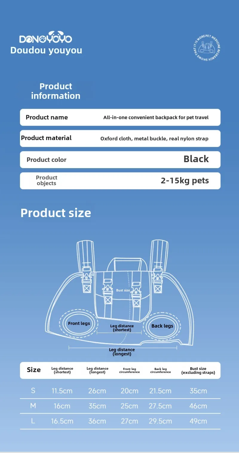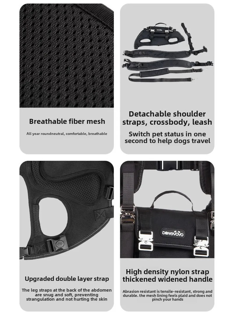 Descripción:Bolso cruzado de doble hombro para mascotas, mochila para perros, bolso de tracción para perros medianos y pequeños, portátil para montar en mascotas
