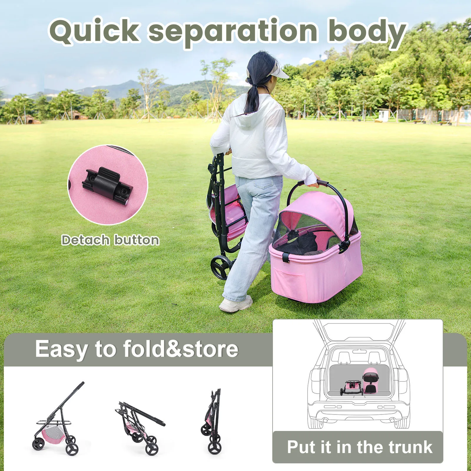 Bolsa multifuncional para carrito de mascotas, separación de un vehículo, doble uso, cesta plegable con un solo clic, ligera
