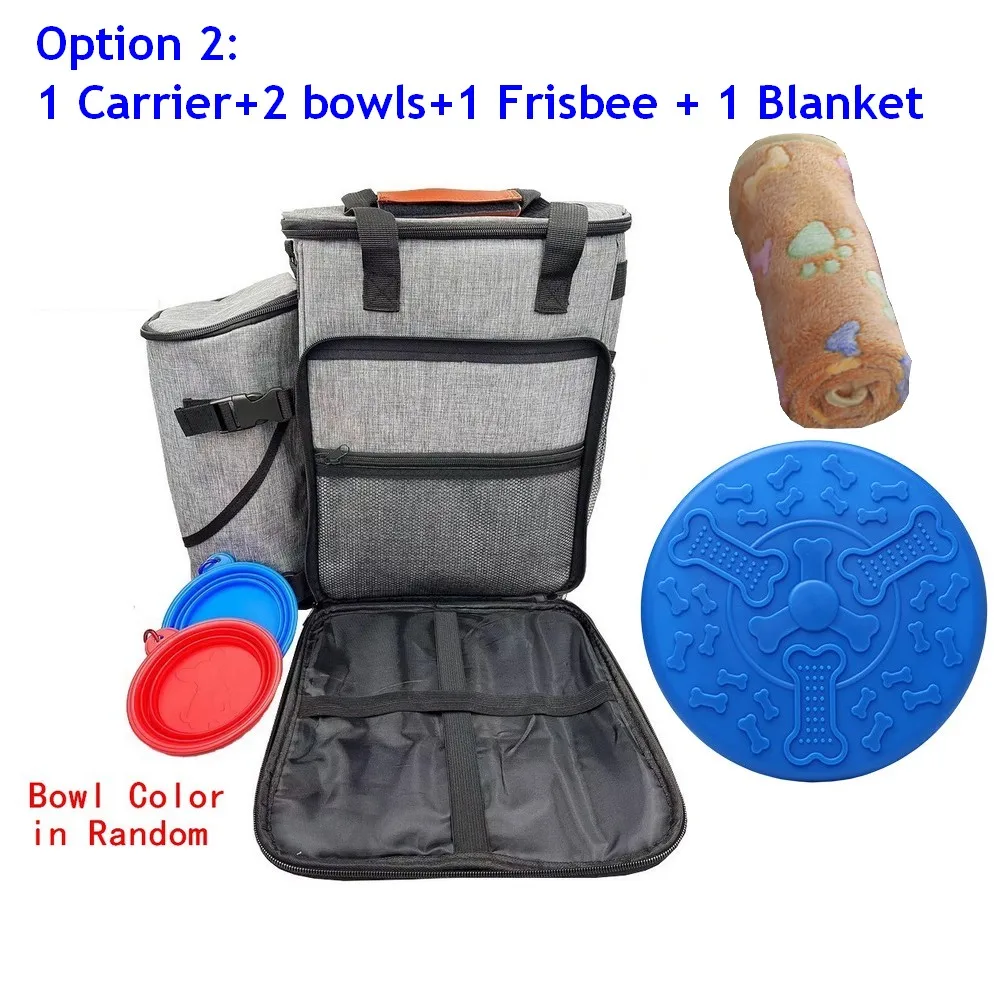 Kit organizador de viaje para perros. Ideal para el uso diario de todos sus elementos esenciales: lleva cómodamente comida, agua, golosinas, correas, Frisbee, juguetes para mascotas, botiquín de primeros auxilios.
